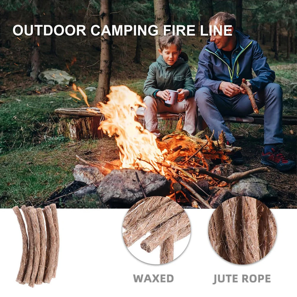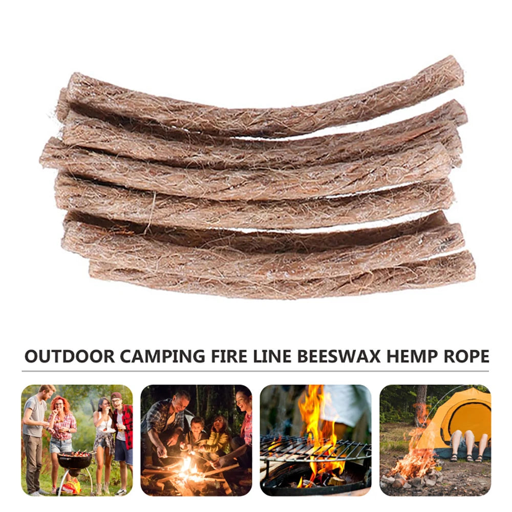 10pcs/set Camping Wax Fire Rope Outdoor Ignition Rope Durable Hemp Rope Camping Fire Emergency Hiking Camping Barbecue Fire Rope