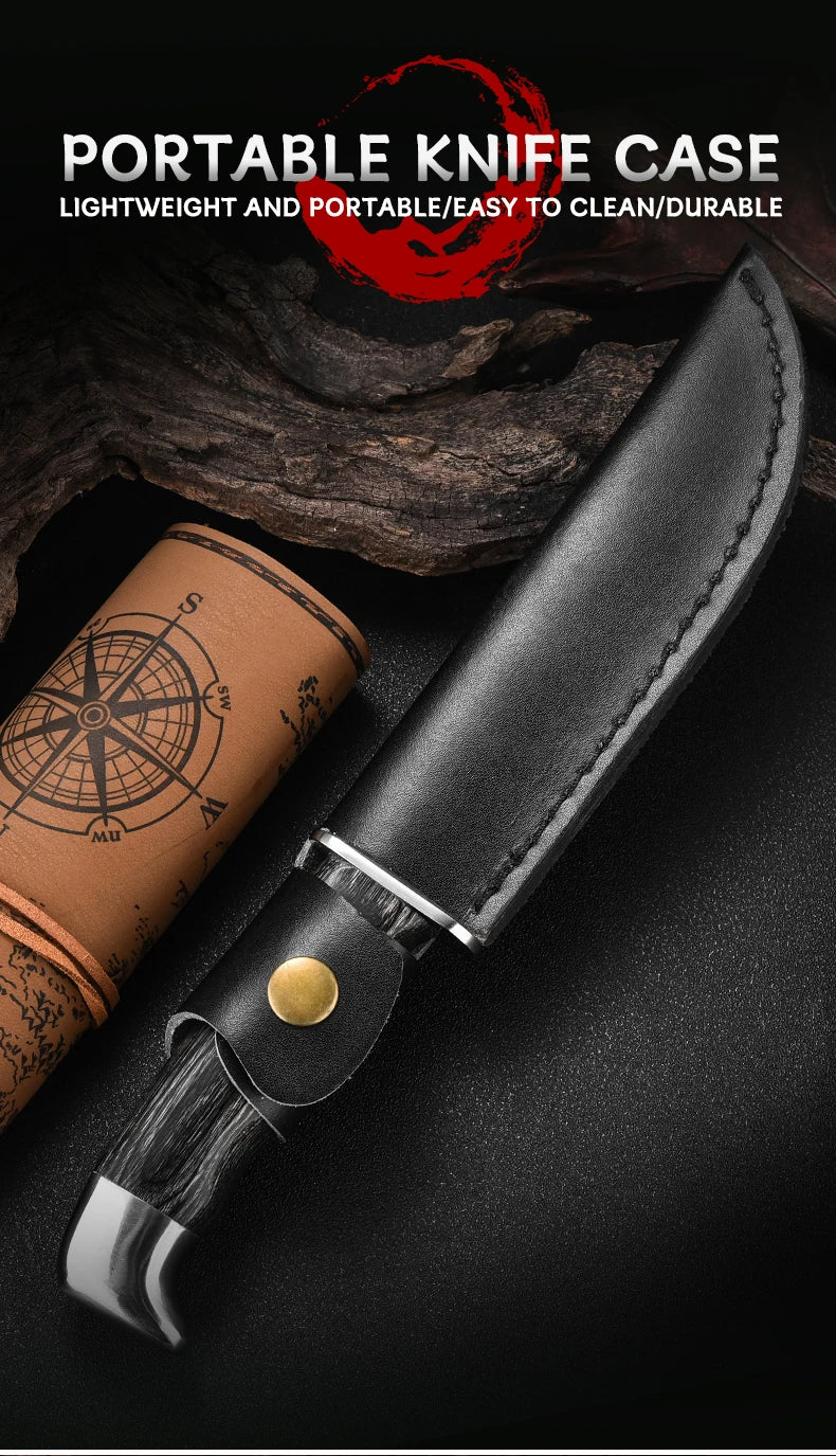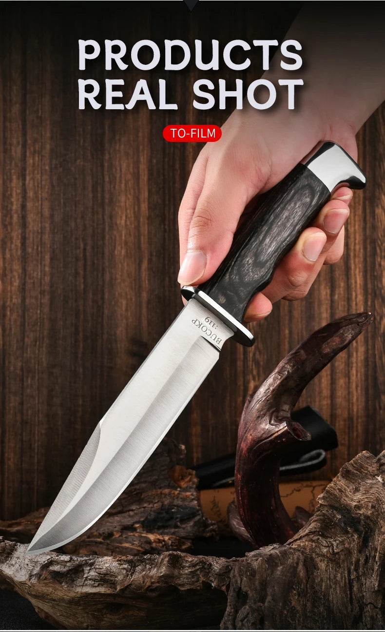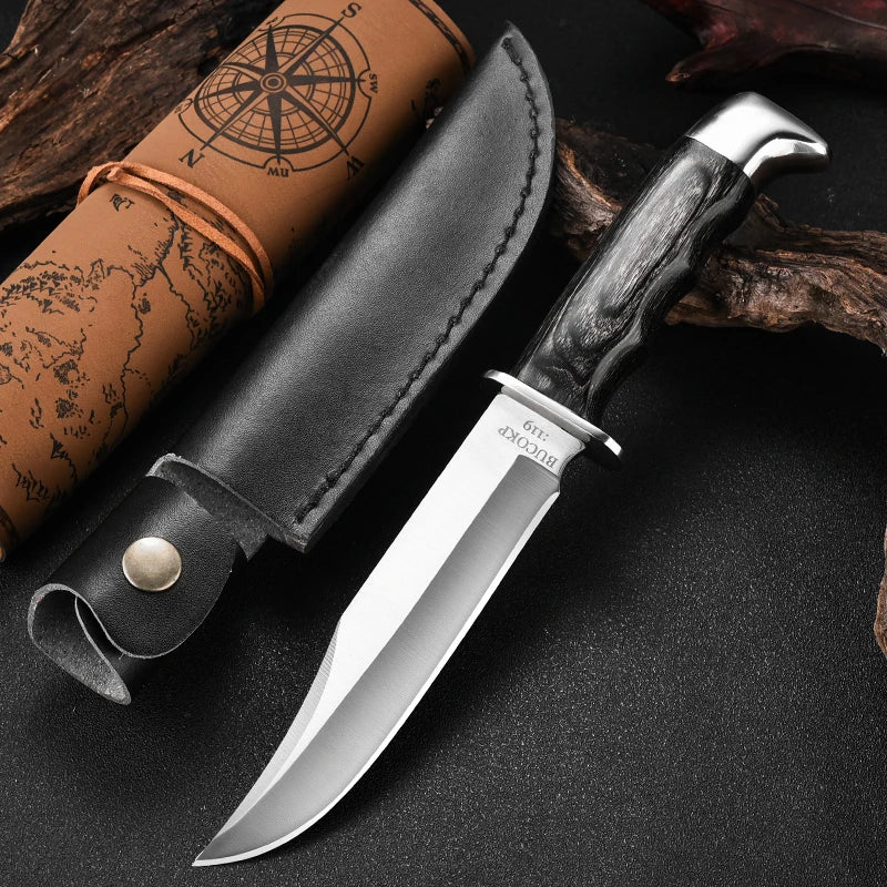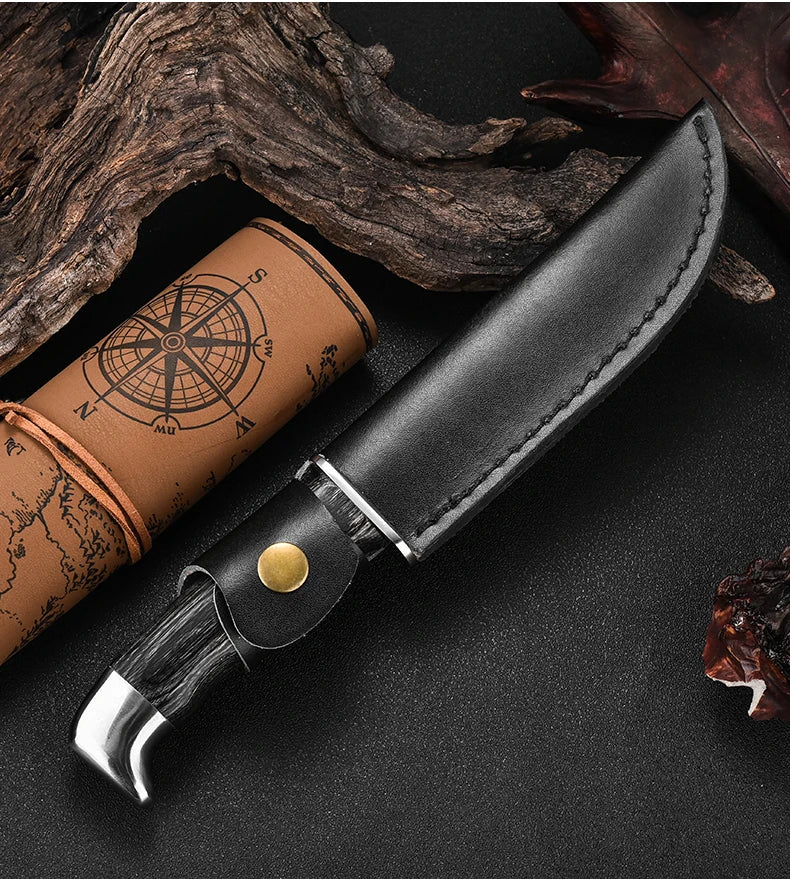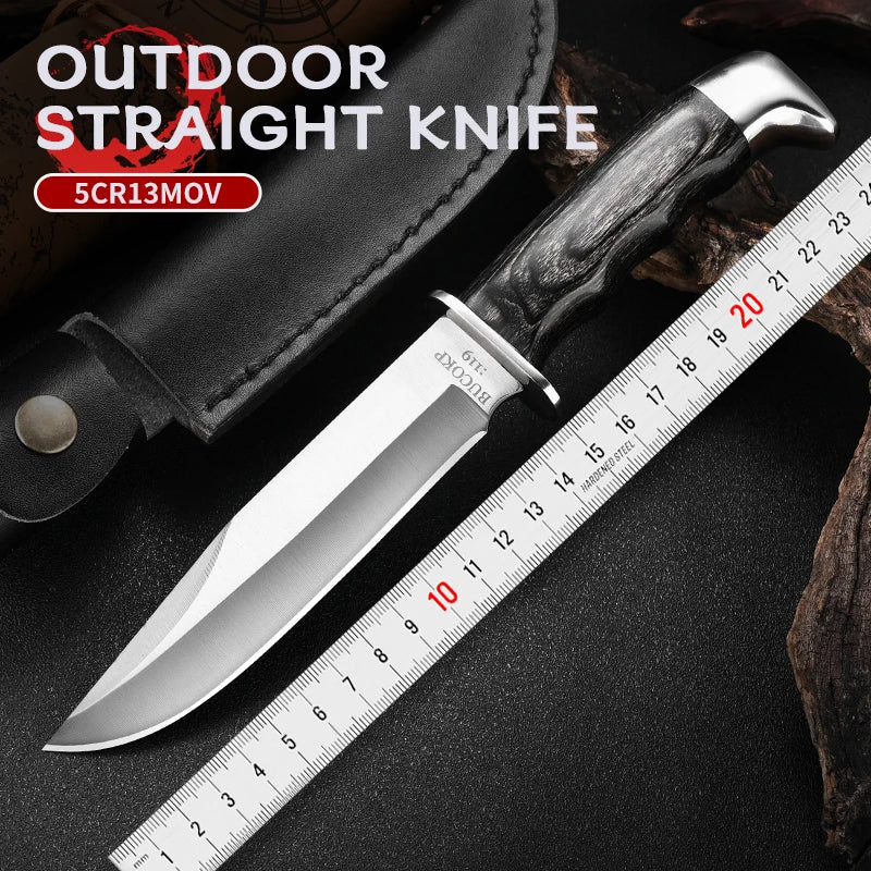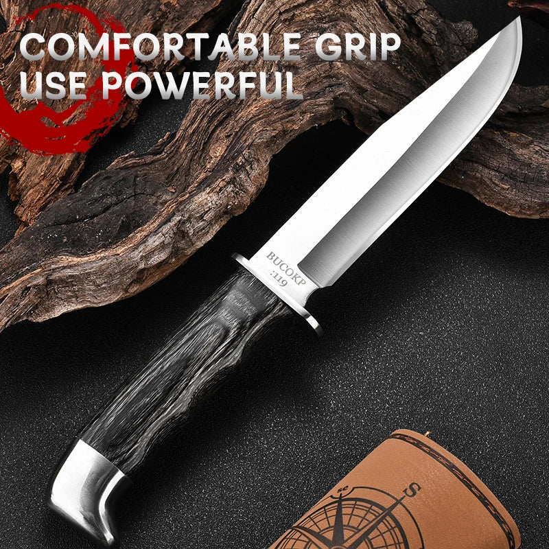 SteelEdge™ Camping Knife – Ultra-Durable Stainless Blade with Wooden Handle & Black Sheath for Outdoor Use