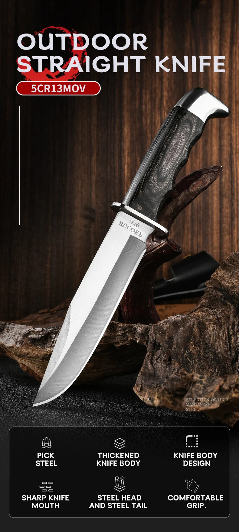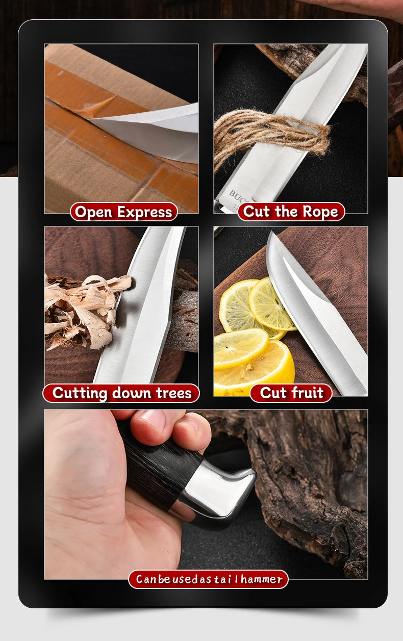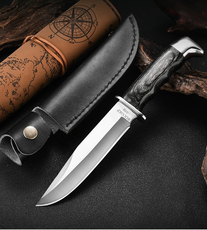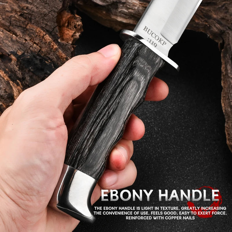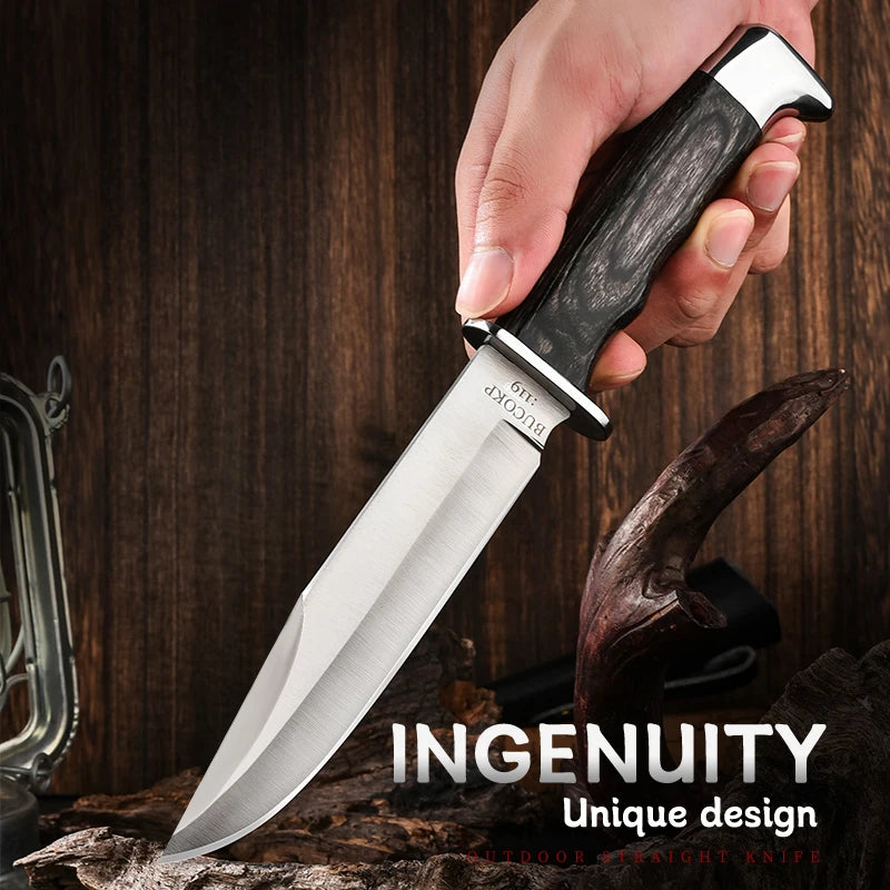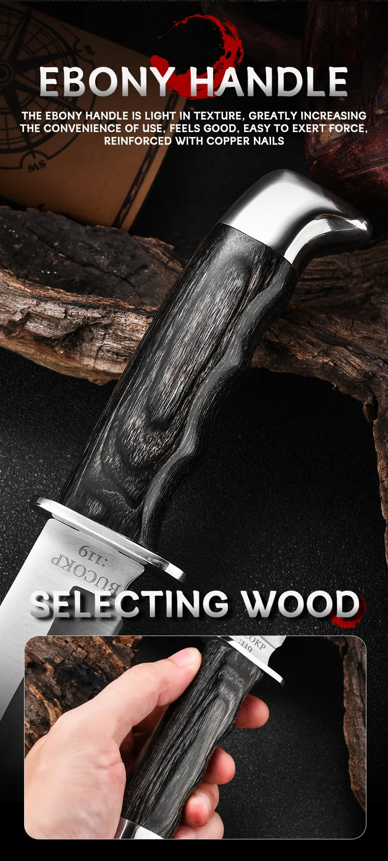 SteelEdge™ Camping Knife – Ultra-Durable Stainless Blade with Wooden Handle & Black Sheath for Outdoor Use