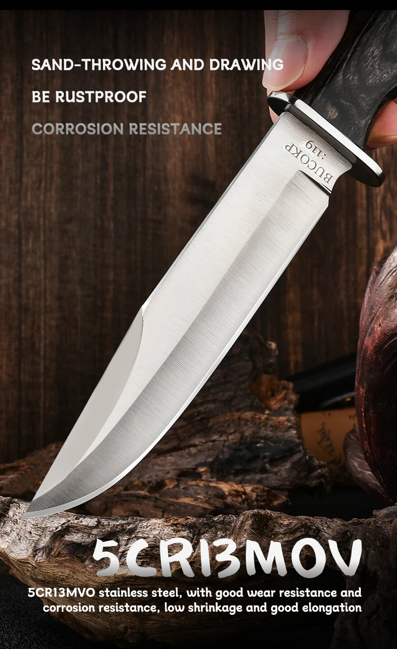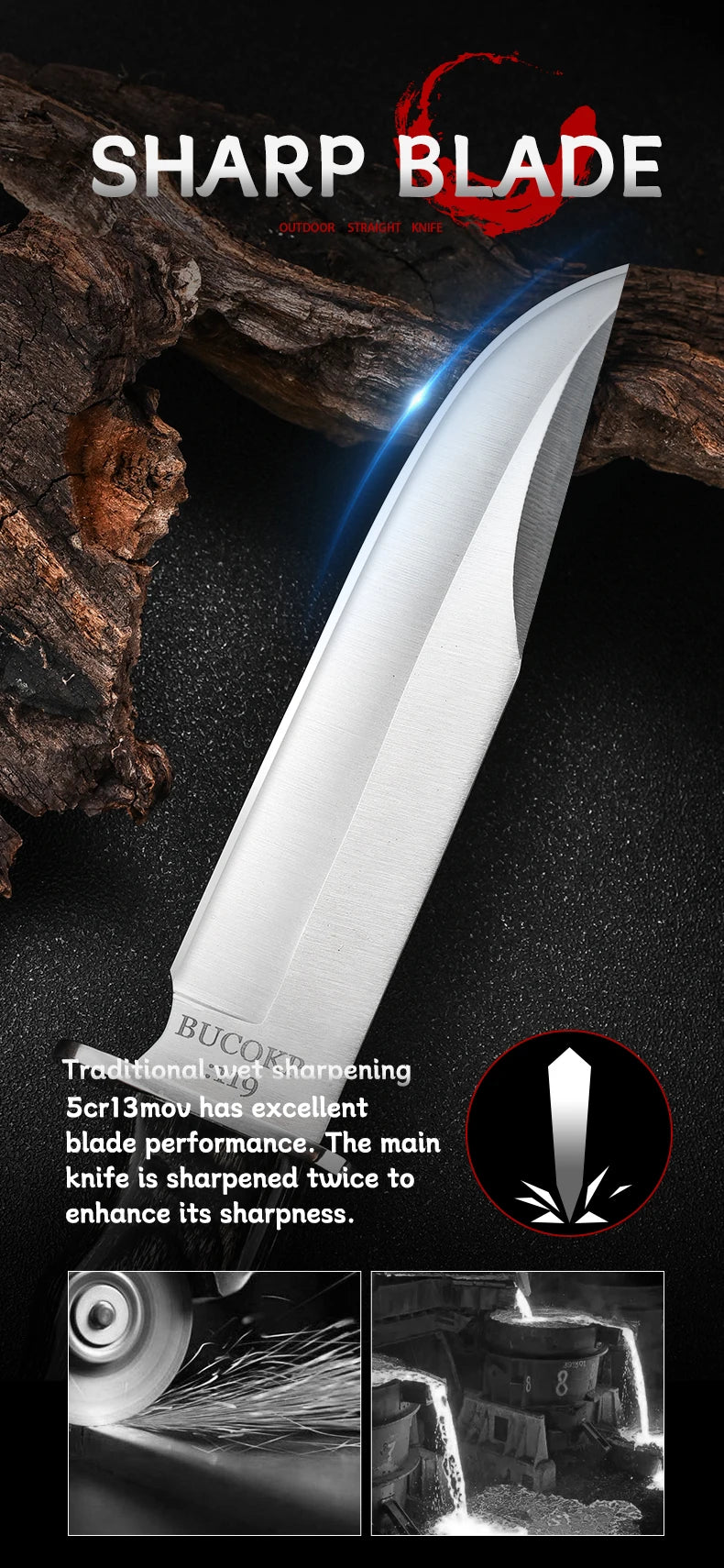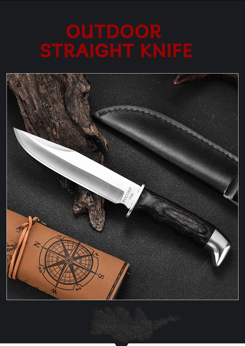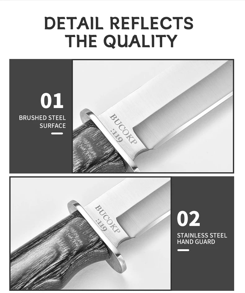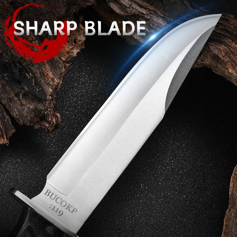SteelEdge™ Camping Knife – Ultra-Durable Stainless Blade with Wooden Handle & Black Sheath for Outdoor Use