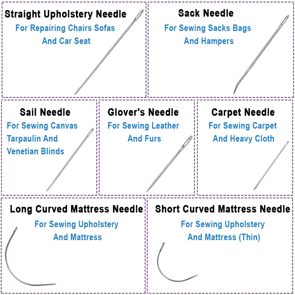 A versatile mix of straight, curved, sail, and carpet needles to handle every stitch and situation. -