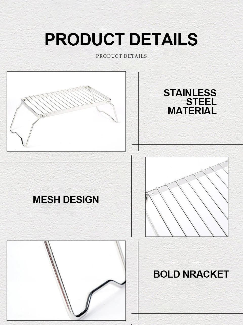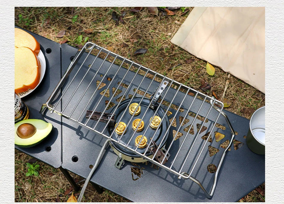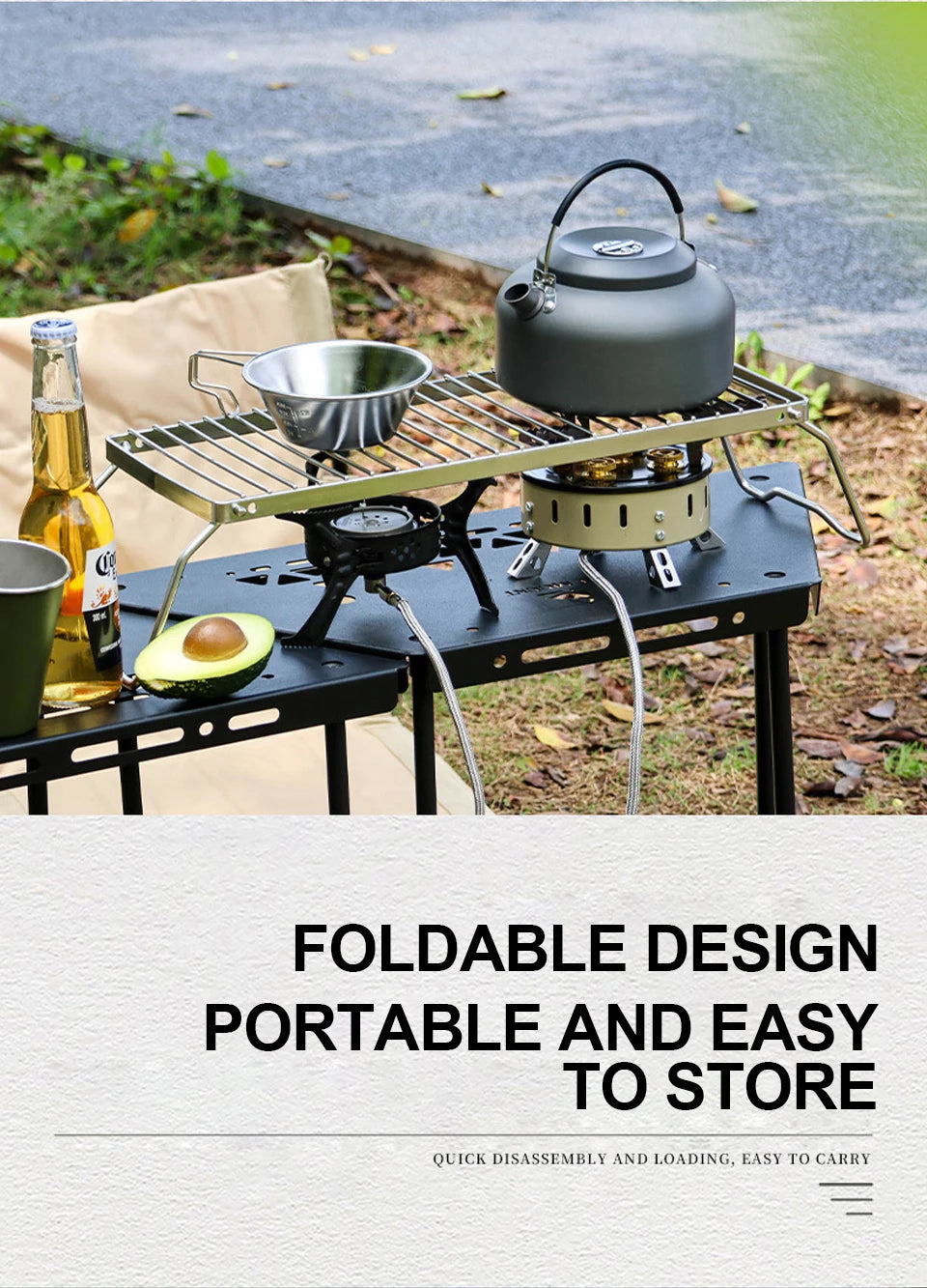 BBQ Grill Multifunctional Folding Campfire Grill Portable Stainless Steel Camping Grill Grate Gas Stove Stand Outdoor BBQ Rack