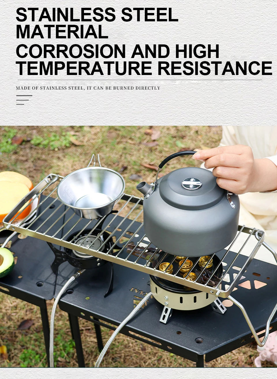 Multifunctional Design: Acts as a grill grate over fire and stand for gas or alcohol stovesāversatility at its best.