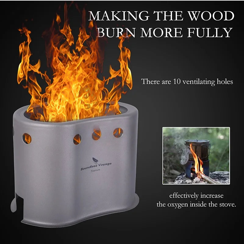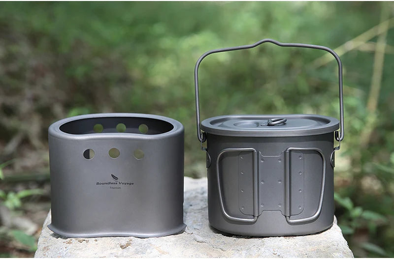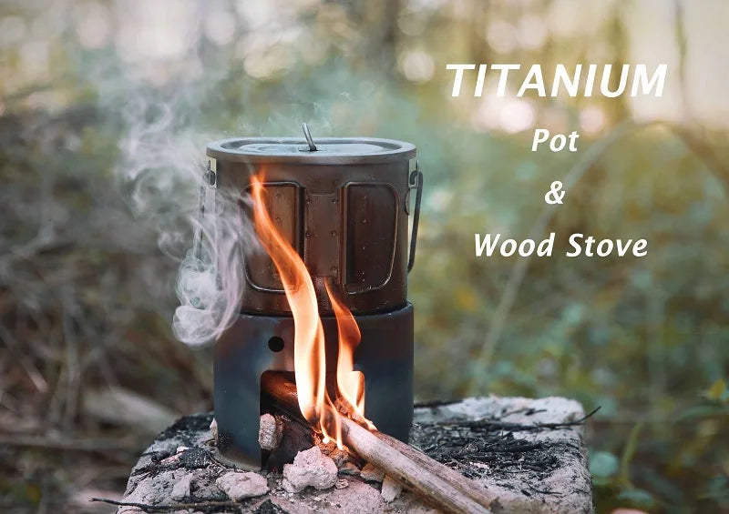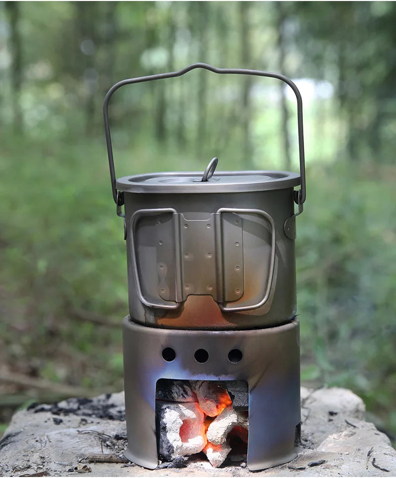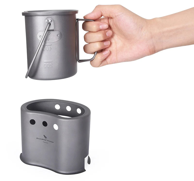 Boundless™ Titanium Cook Set – 2-in-1 800ml Canteen Cup & Wood Stove for Solo Outdoor Camping & Hiking