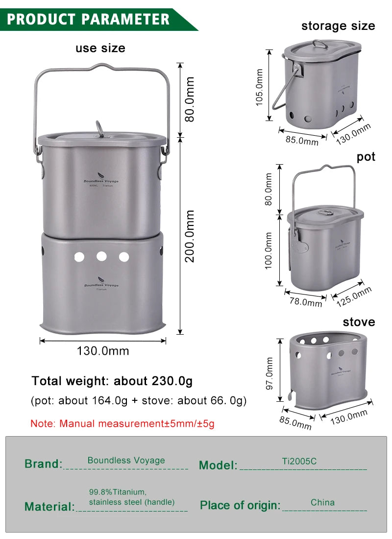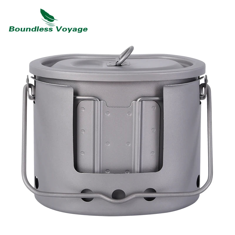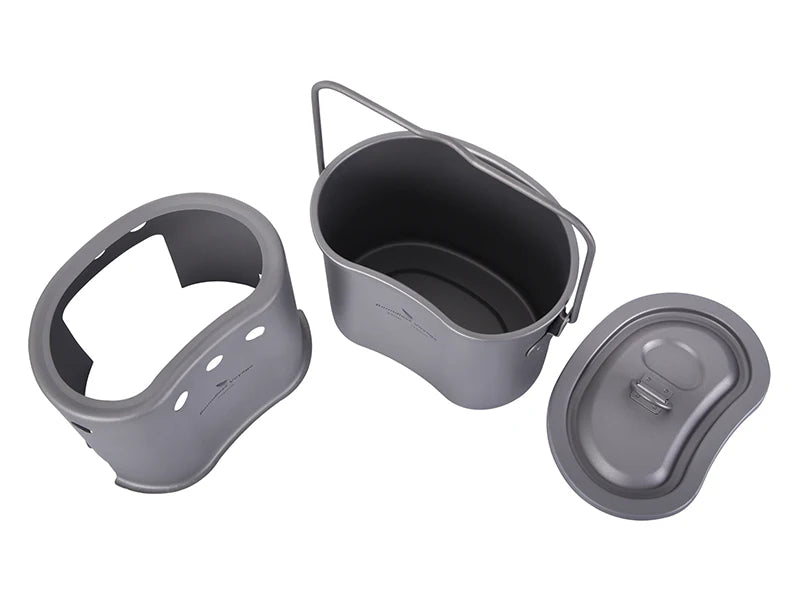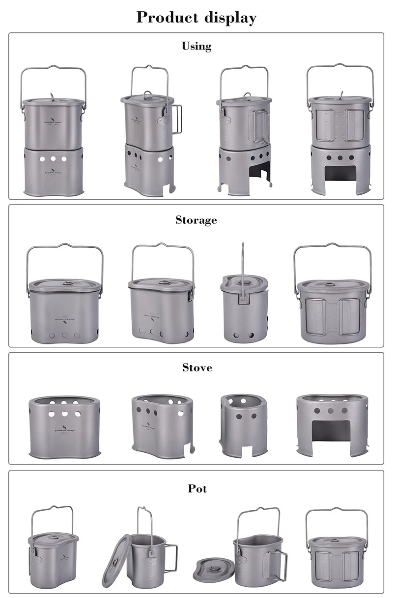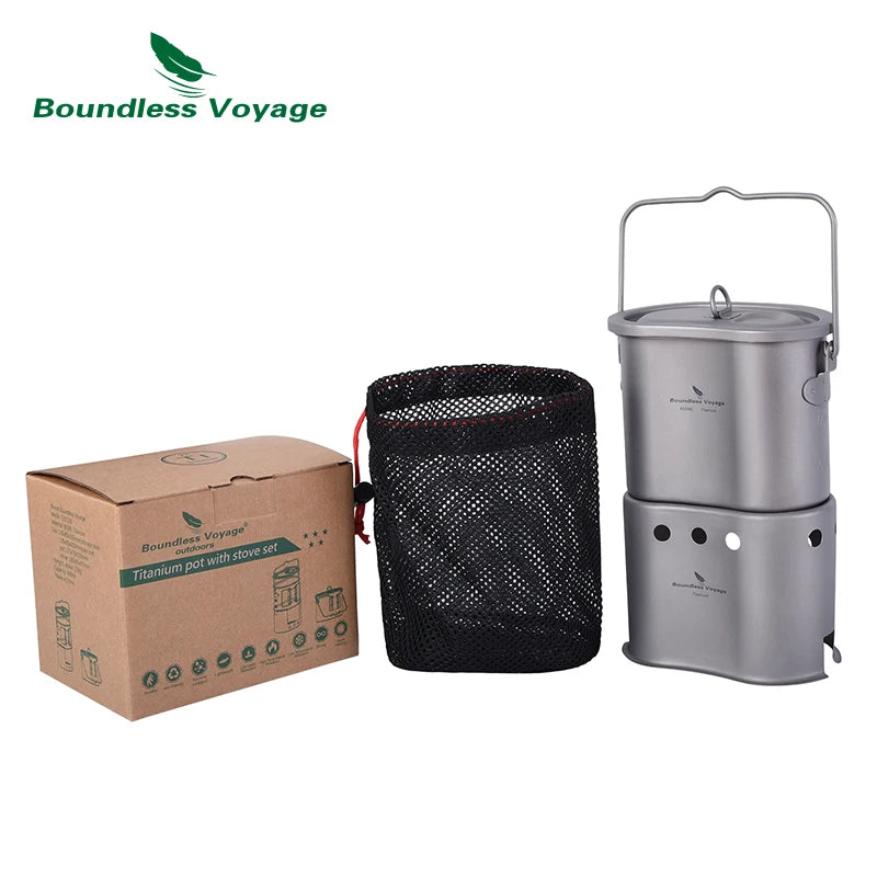 Boundless Voyage 2 in 1 Camping Titanium Pot Wood Stove Set 800ml Canteen Cup Outdoor Solo Cookware Mess Kit for 1 Man