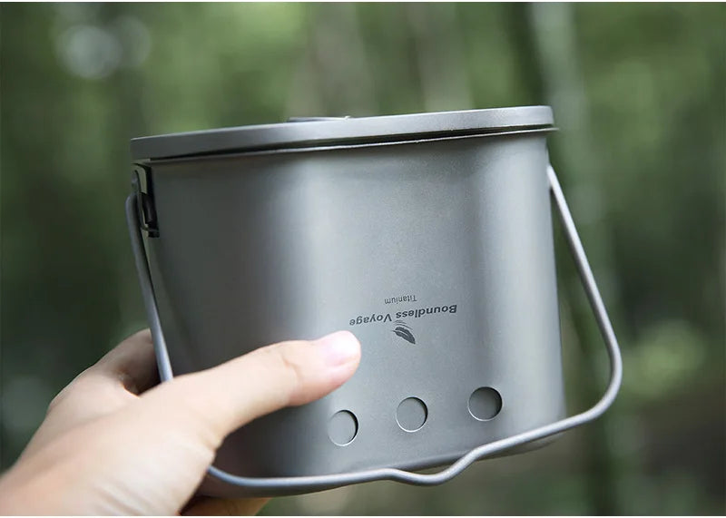 The Boundless™ Titanium Cook Set is your ultralight, all-in-one solution for outdoor cooking and hydration. Featuring an 800ml titanium canteen cup paired with a compact wood-burning stove, this set delivers durability, efficiency, and simplicity for solo campers and hikers. Whether you’re boiling water, cooking meals, or sipping coffee by the fire, Boundless™ keeps it lightweight and trail-ready.