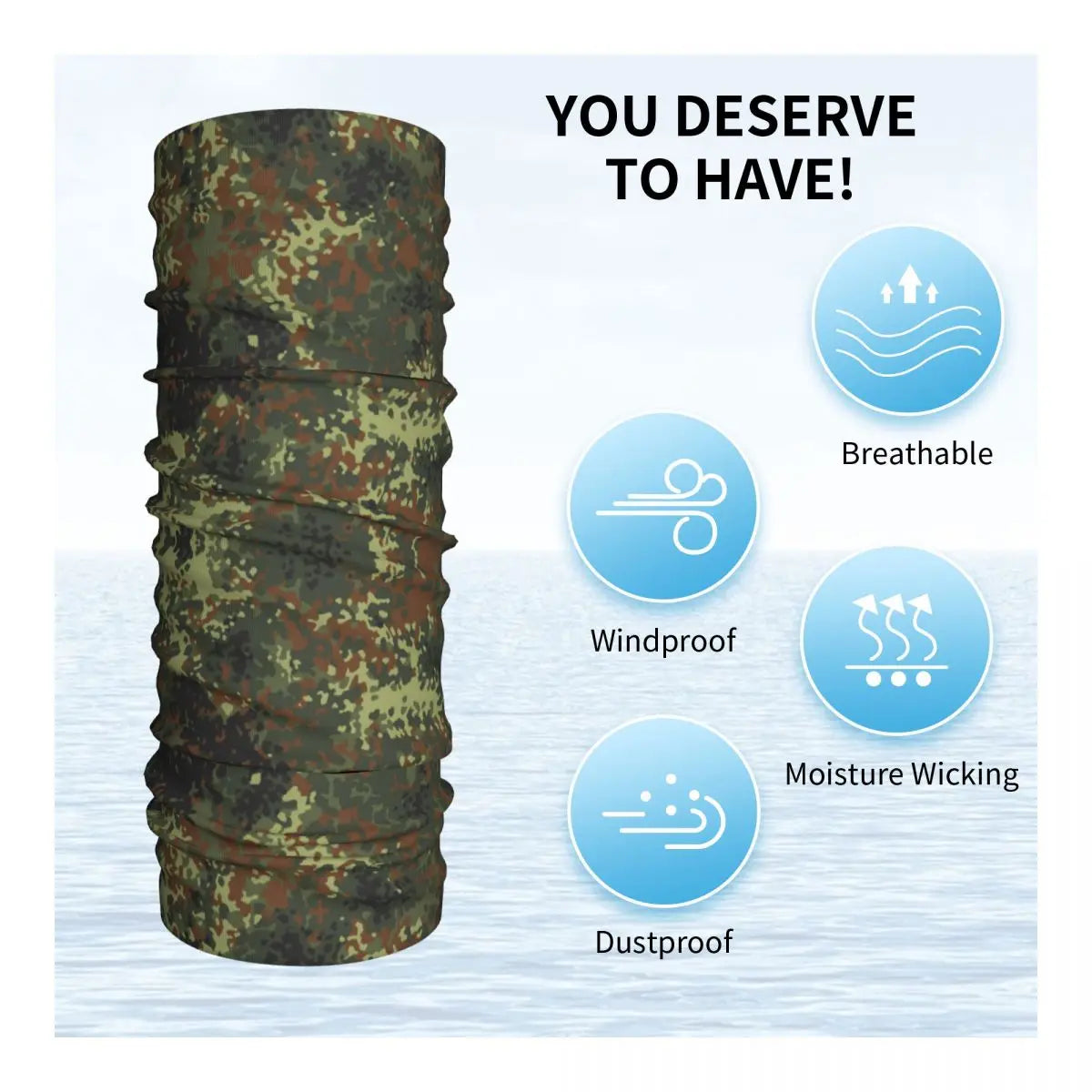 Custom Flecktarn Camo Bandana Neck Gaiter Windproof Face Scarf Cover Men Women Woodland Camouflage Headwear Tube Balaclava