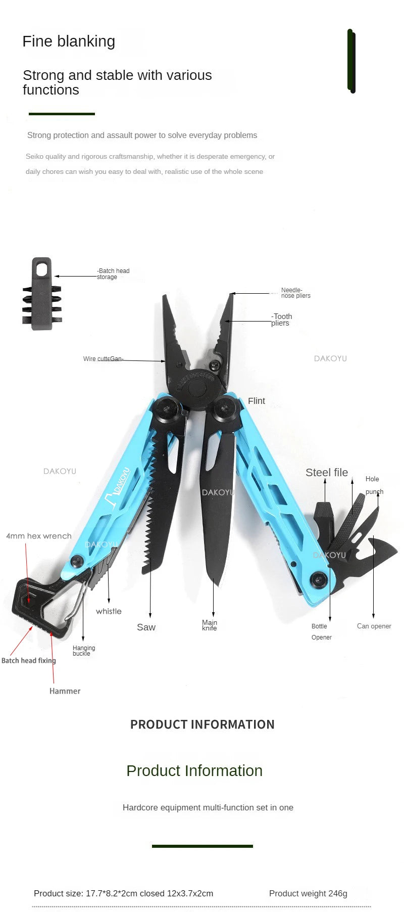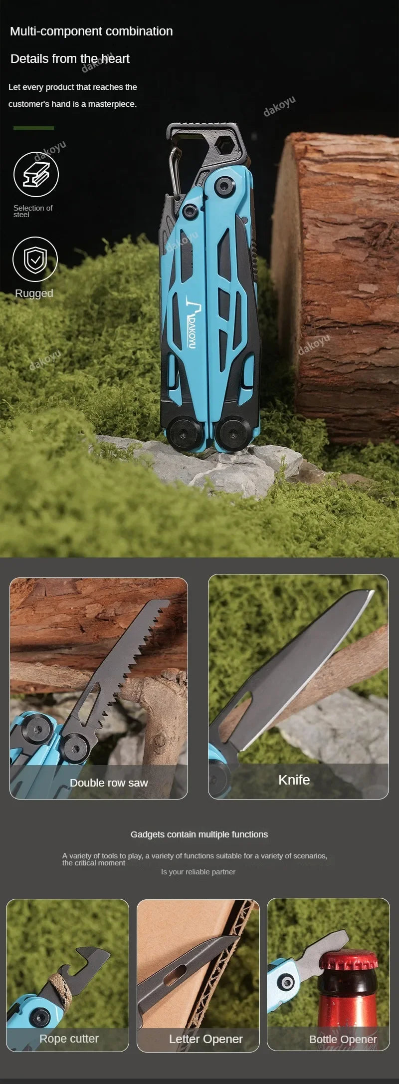 Daicamping DL12 EDC Multi Tools Multifunctional 7CR17MOV Plier Camping Gear Blade Multitools Clip Folding Multi Knife