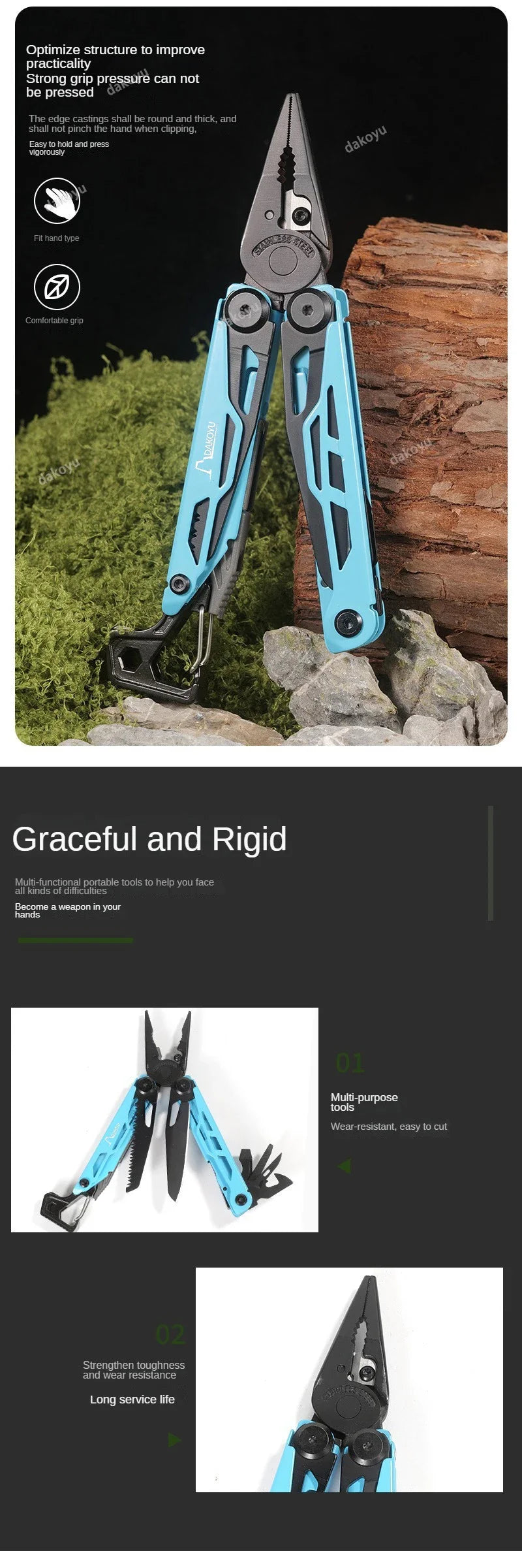 DAKOYU DKShadow Multitool Camping Pliers with Emergency Whistle -8 Color Compact Outdoor Tool, Suitable for Hiking and Camping