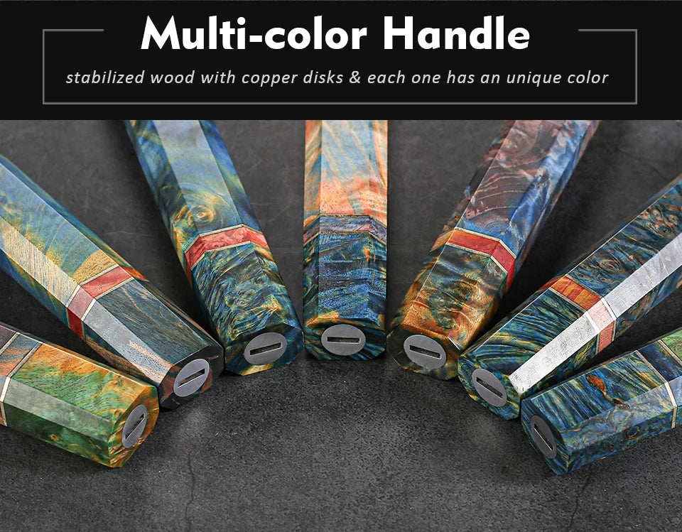Multi-layered construction ensures exceptional sharpness, edge retention, and unique patterning. -