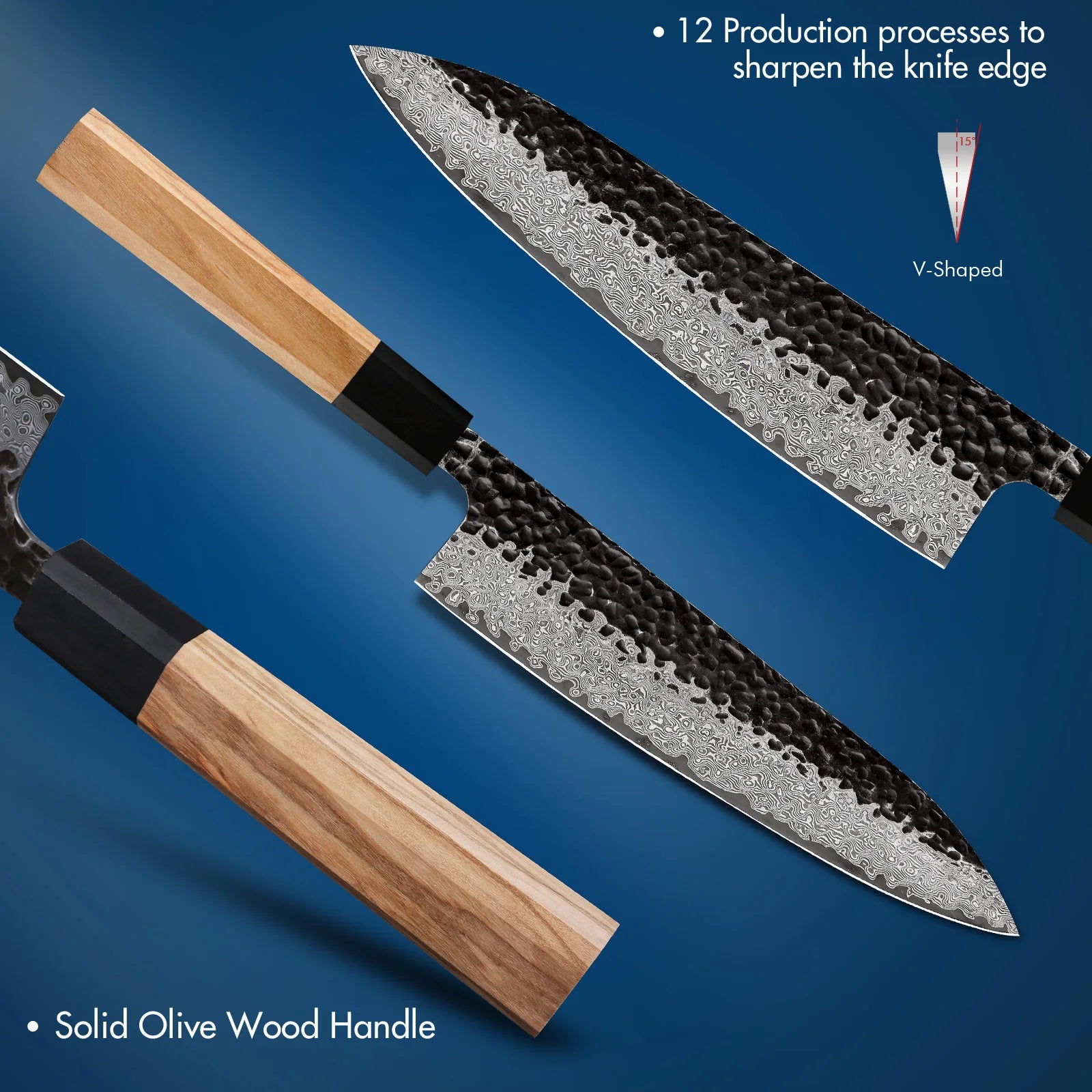 ZenForge⢠Damascus Steel Chef Knife ā Handmade Japanese PRO Kitchen Knife for Precision Culinary Craftsmanship