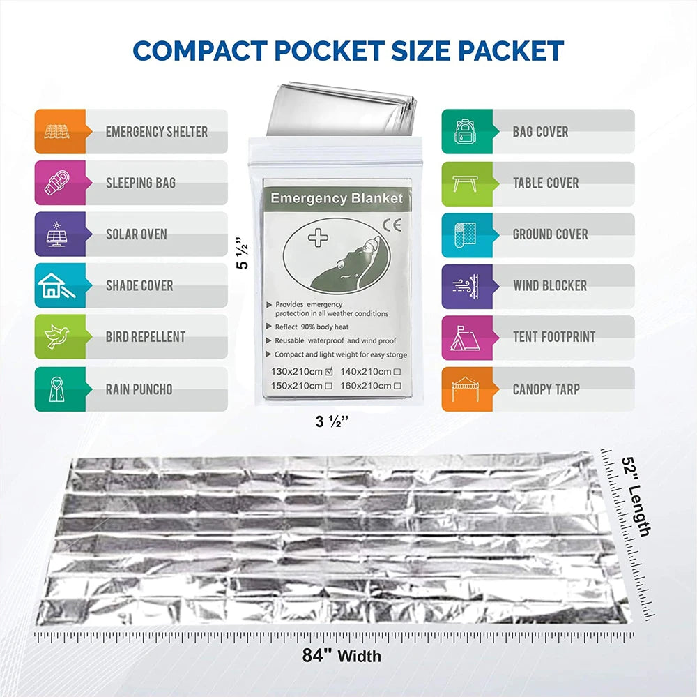 Feature 5: Emergency Foil Blanket, Survival Thermal Mylar Blankets
