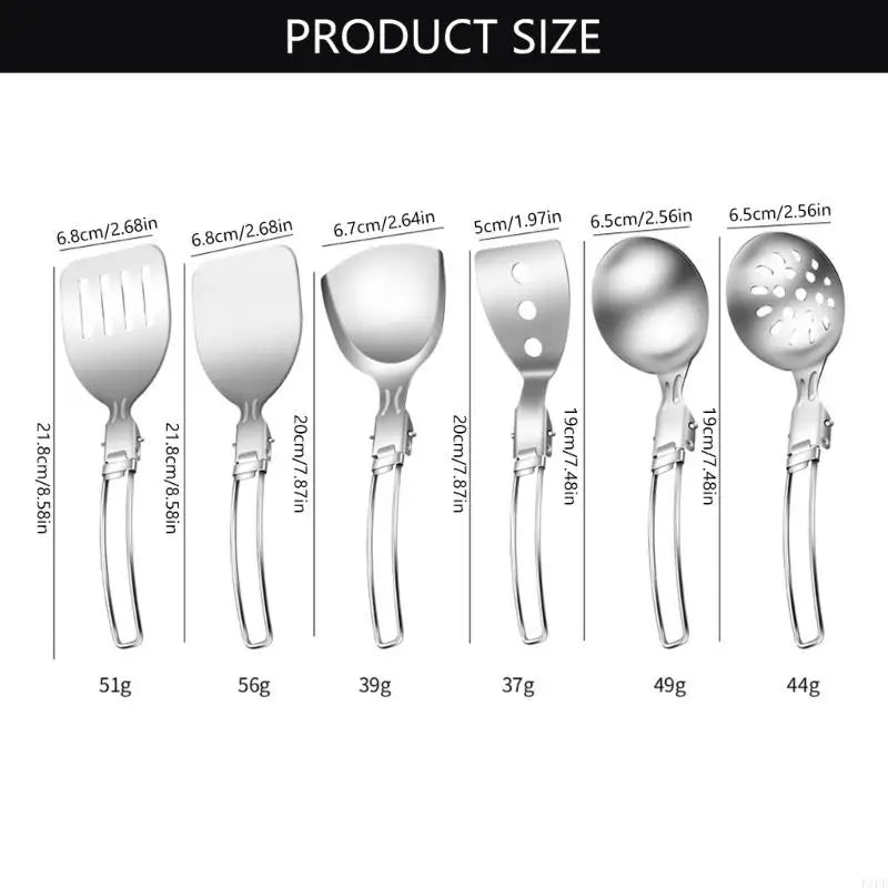 F1FD™ Folding Camp Utensils Set – Stainless Steel Ladle, Strainer & Spatula for Outdoor Cooking