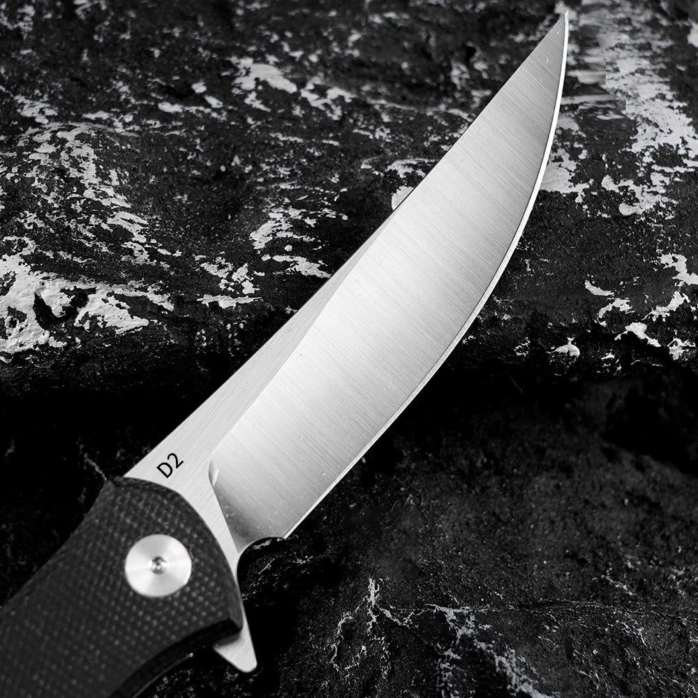 I've been looking for a knife with exactly this blade for a long time. The mechanics are perfect, the sound, the flip is a fairytale of dreams. d2 on the blade whoever wants to say anything on the internet. I parted with a heavy heart and left as a gift. Special thanks to the seller for checking before shipping. Delivery by SDEK courier to the door. I will order more. I'm afraid to write a review because it will sell out))) The Micarta handle was not available in black, I ordered light brown or dark ochre, same thing.
