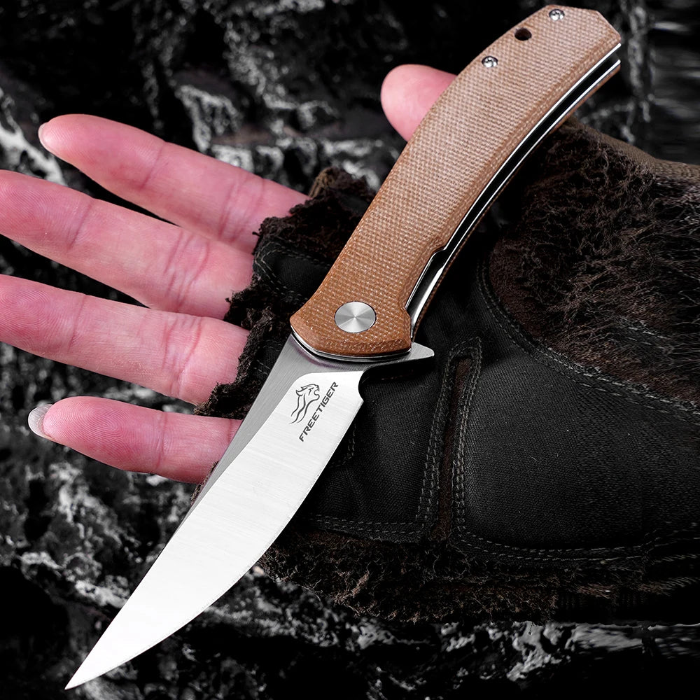 FREETIGER™ 2025 D2 Pocket Knife – Micarta Handle Folding Blade for Outdoor Camping, Tactical Hunting & EDC Survival Gear