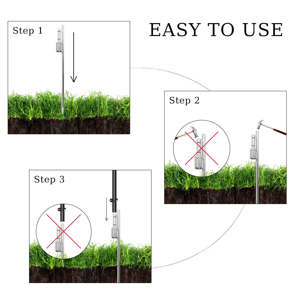 No tools required ā simply push and rotate into the ground for a solid hold. -