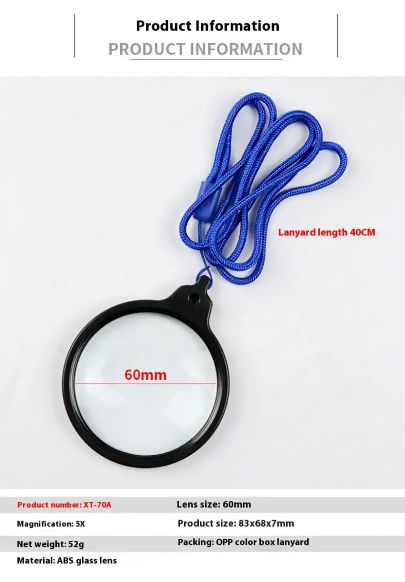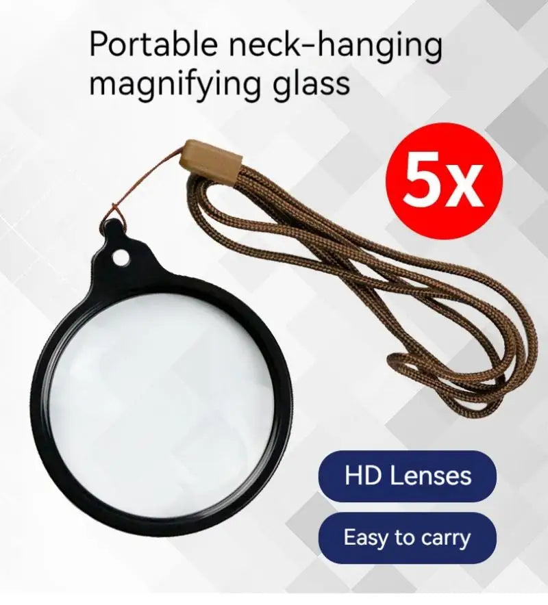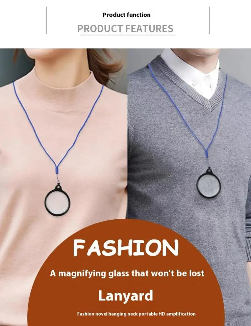 Hands-Free Hanging Magnifier for Reading Portable Chest-Mounted Design with Strap, Ideal for Seniors & Students