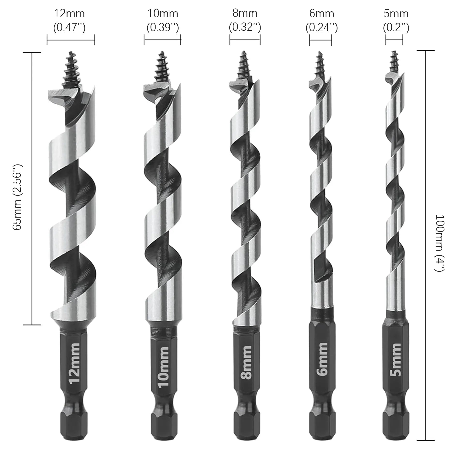 Includes 5, 6, 8, 10, and 12mm sizes for all your precision wood drilling needs. -