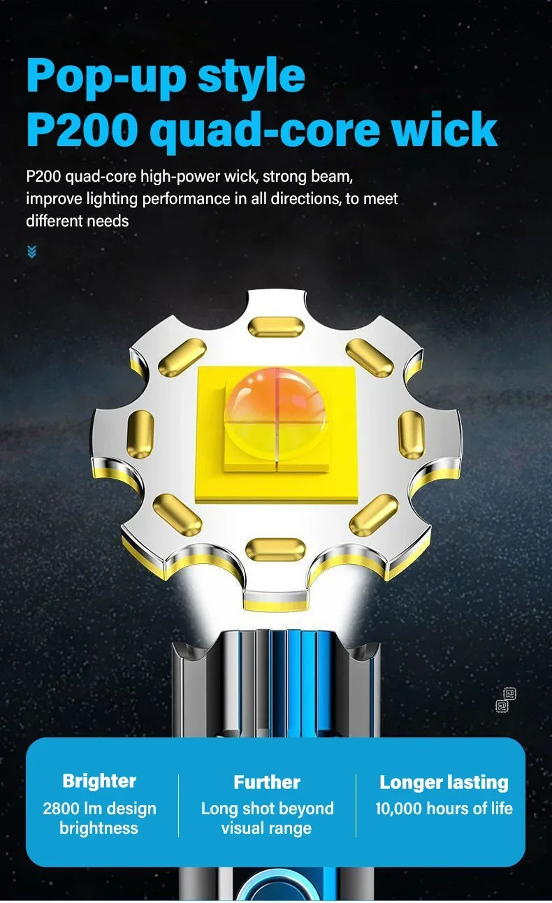 High Strong Power Led Flashlights 2000LM Tactical Torch with Display Light USB Charging Camping Fishing Emergency Zoom Lantern