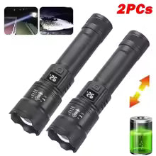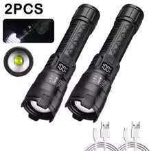 High Strong Power Led Flashlights 2000LM Tactical Torch with Display Light USB Charging Camping Fishing Emergency Zoom Lantern