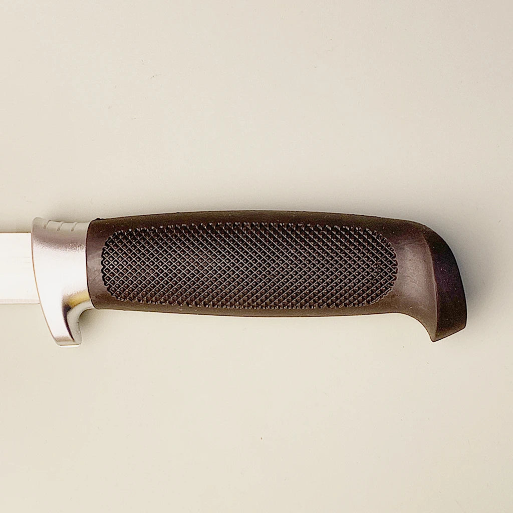 Knife received. Sharply sharpened, but there is a gap near the blade, the bolster is plastic, the handle is rubberized.