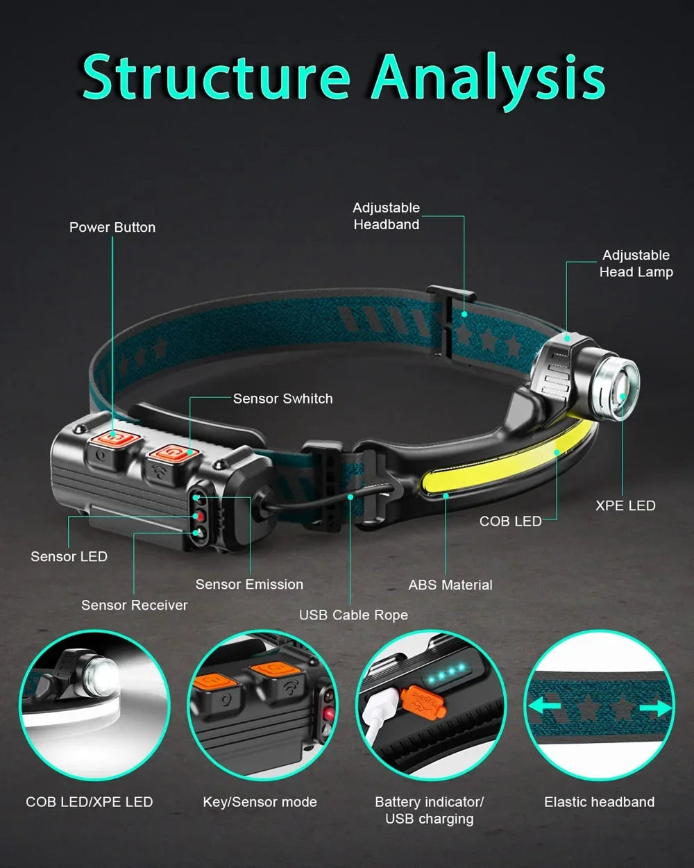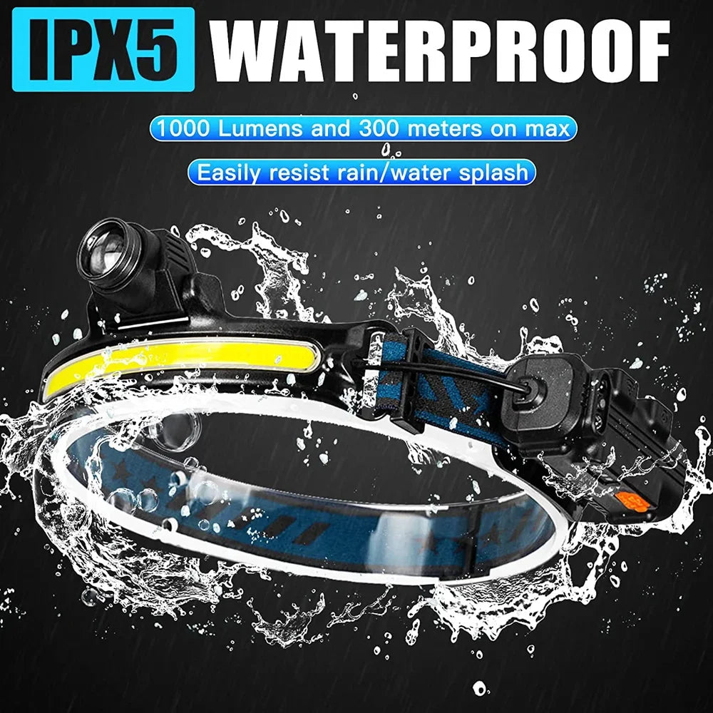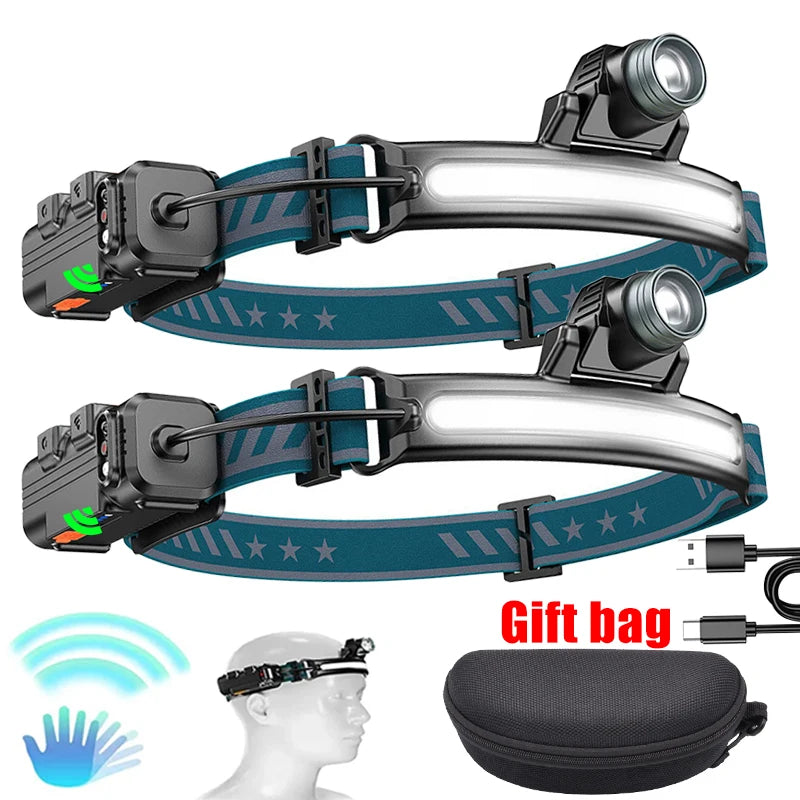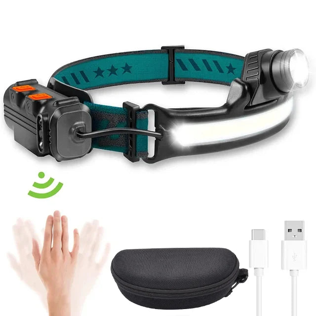 Induction Headlamp COB+LED Headlamp Built in Battery USB Rechargeable Outdoor Waterproof Camping Fishing Work Lantern