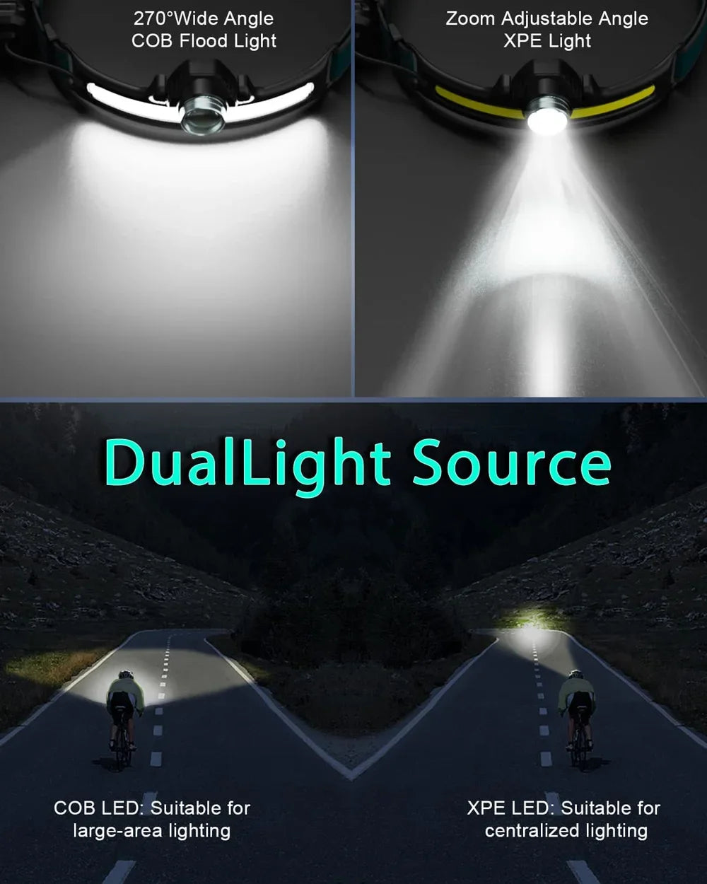 Induction Headlamp XPG+COB LED Head Lamp with Built-in Battery