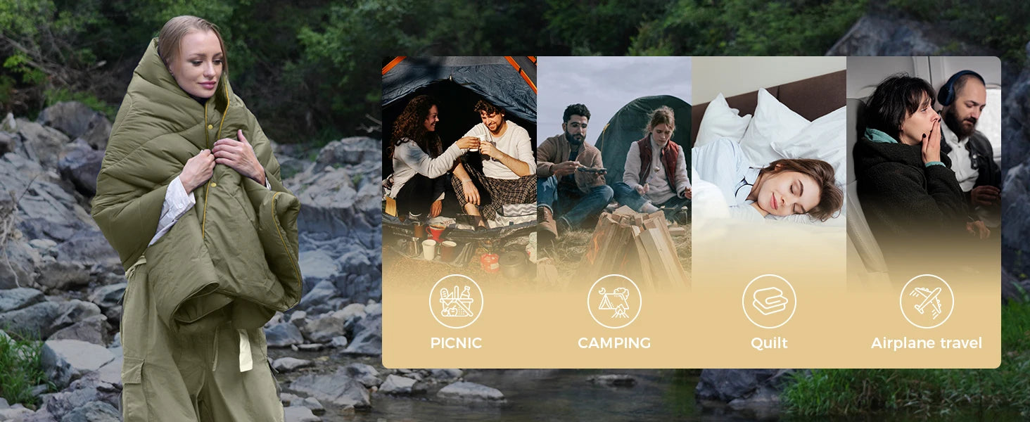 The TitanWrap™ Camping Blanket delivers rugged warmth in a compact, tactical-ready package. Whether you're under the stars, bunkered in a tent, or prepping your pack for extreme weather, this ultralight puffy quilt provides serious insulation without the bulk.