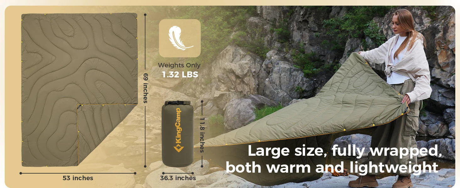 KingCamp Outdoor Camping Blanket, Lightweight Puffy Blanket, Camping Quilt For Cold Weather, Adventure, Sleeping, Backpacking