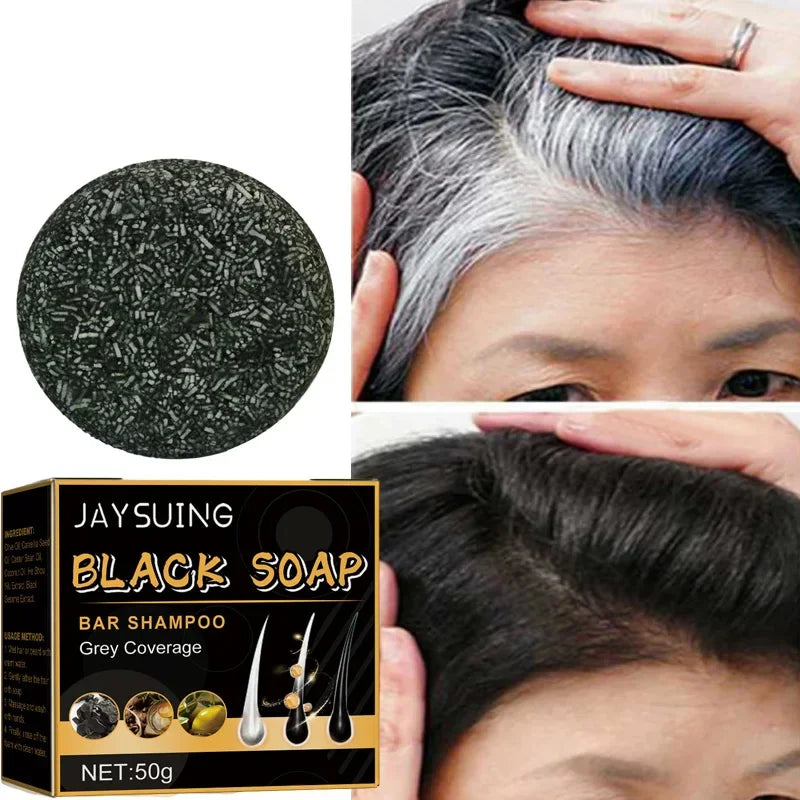 50g Black Hair Soap Hair Darkening Soap Shampoo Bar Fast Effective Repair Gray White Color Dye Hair Body Natural Org