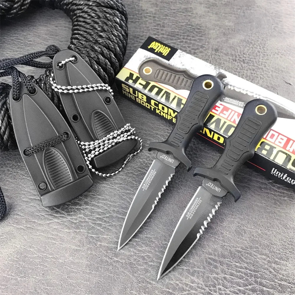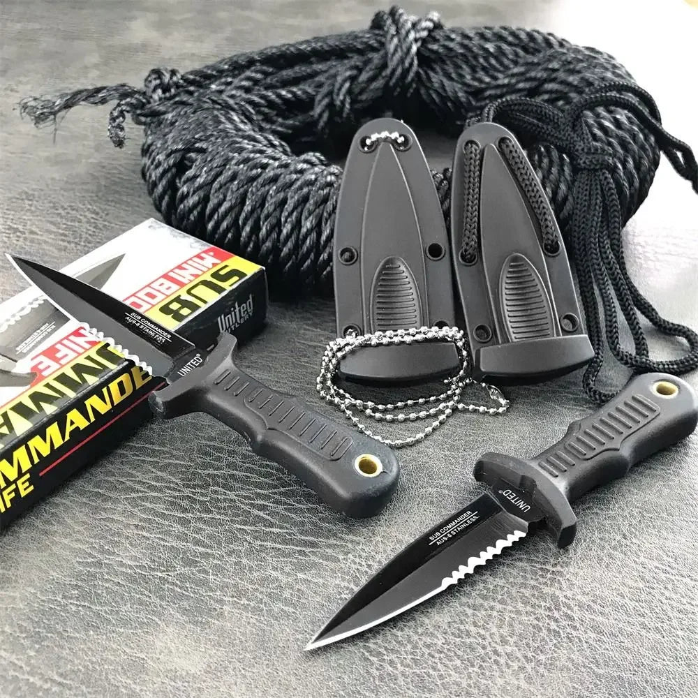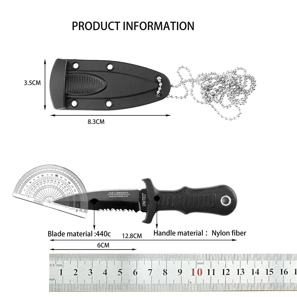 Neck-Mounted Tactical Fixed Blade - 440C Mini Survival Knife for Outdoor EDC, Hunting Combat and Survival with Nylon Handle
