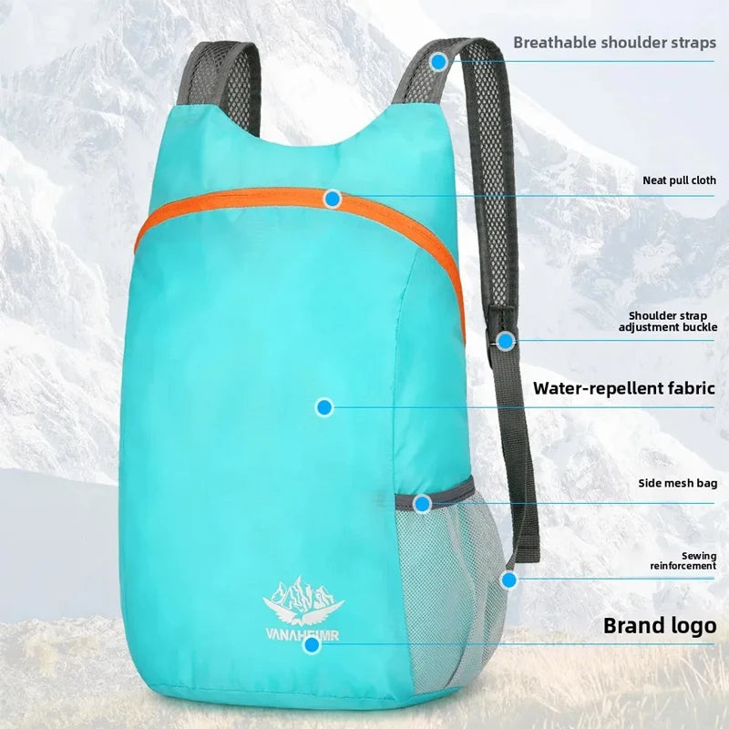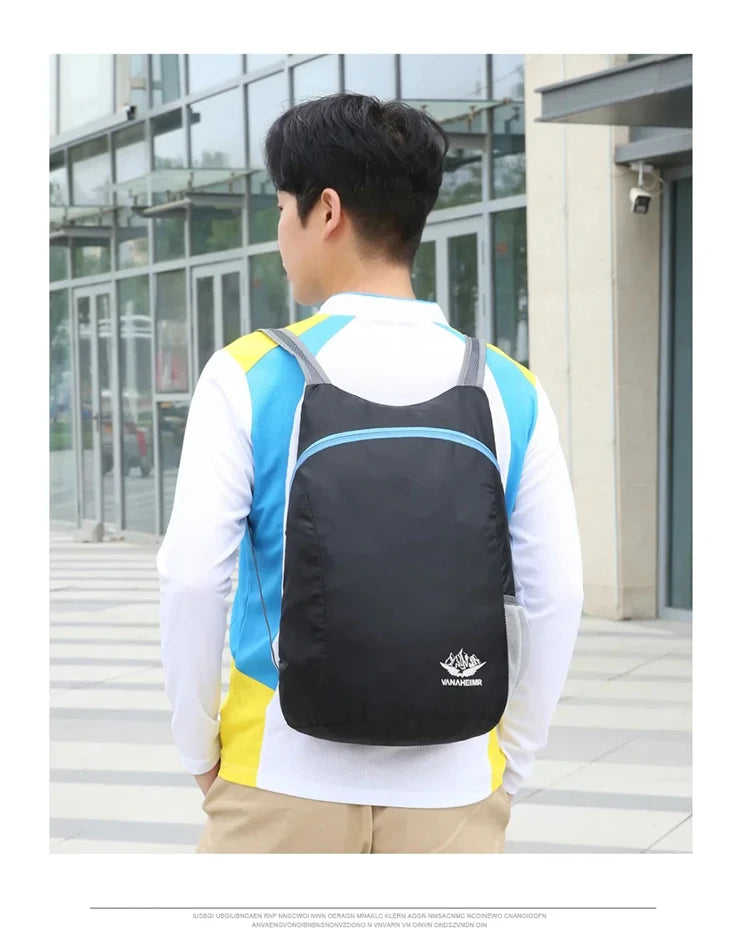FlexTrail™ Foldable Fitness Bag – Lightweight Waterproof Nylon Backpack with Wide Strap for Outdoor & Travel Use