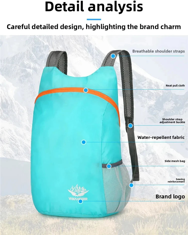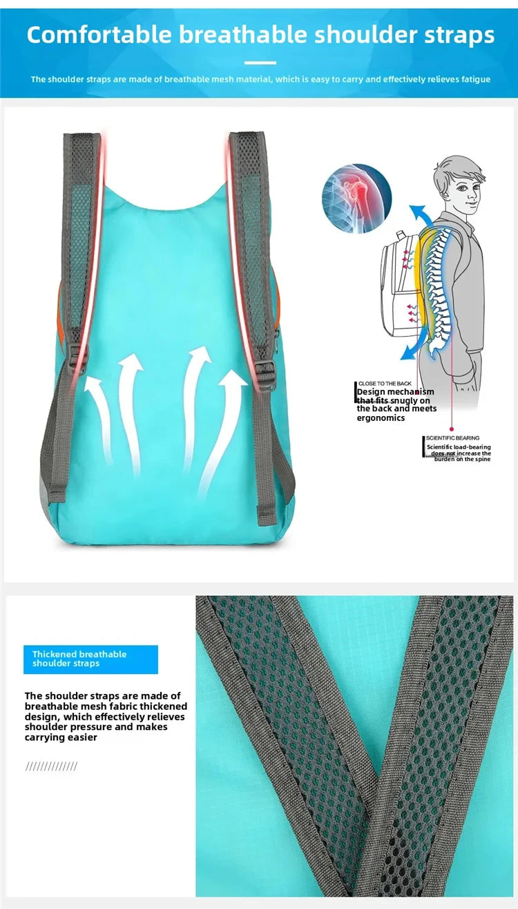 New Foldable Fitness Bag Lightweight Outdoor Cover Waterproof Wide Shoulder Strap Nylon Fabric Multi Color Backpack