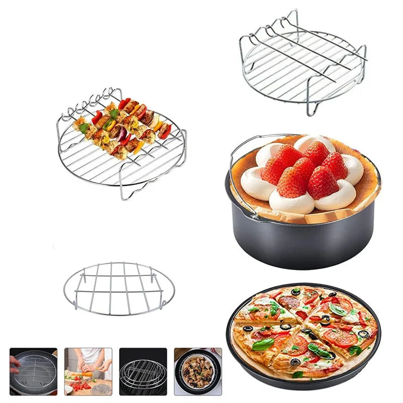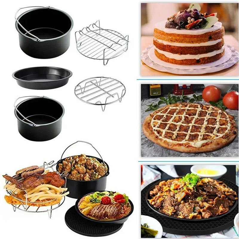 Non-Stick Air Fryer Accessories Universal Baking Pan Cake Barrel Pizza Tray Grill Rack for Cooking Roasting Frying Kitchen Tools