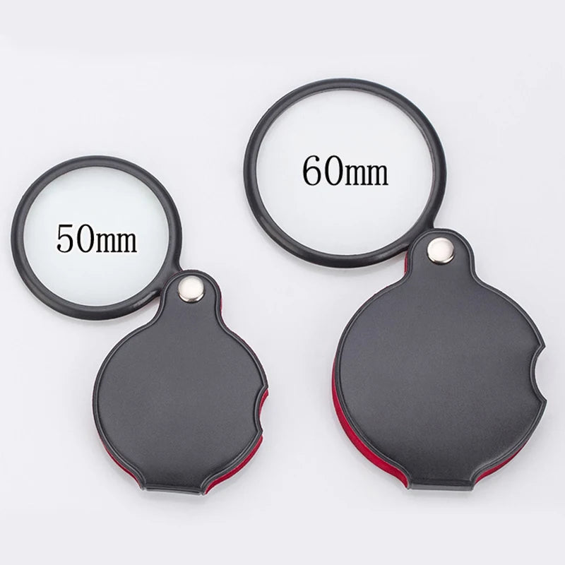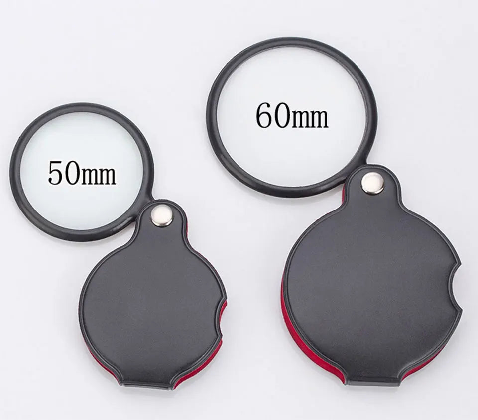 Portable Mini Magnifier 8X 50/60mm Pocket Magnifier 6X Magnifying Glass Reading Magnifier Jewelry Loupe with Folded Leather Case
