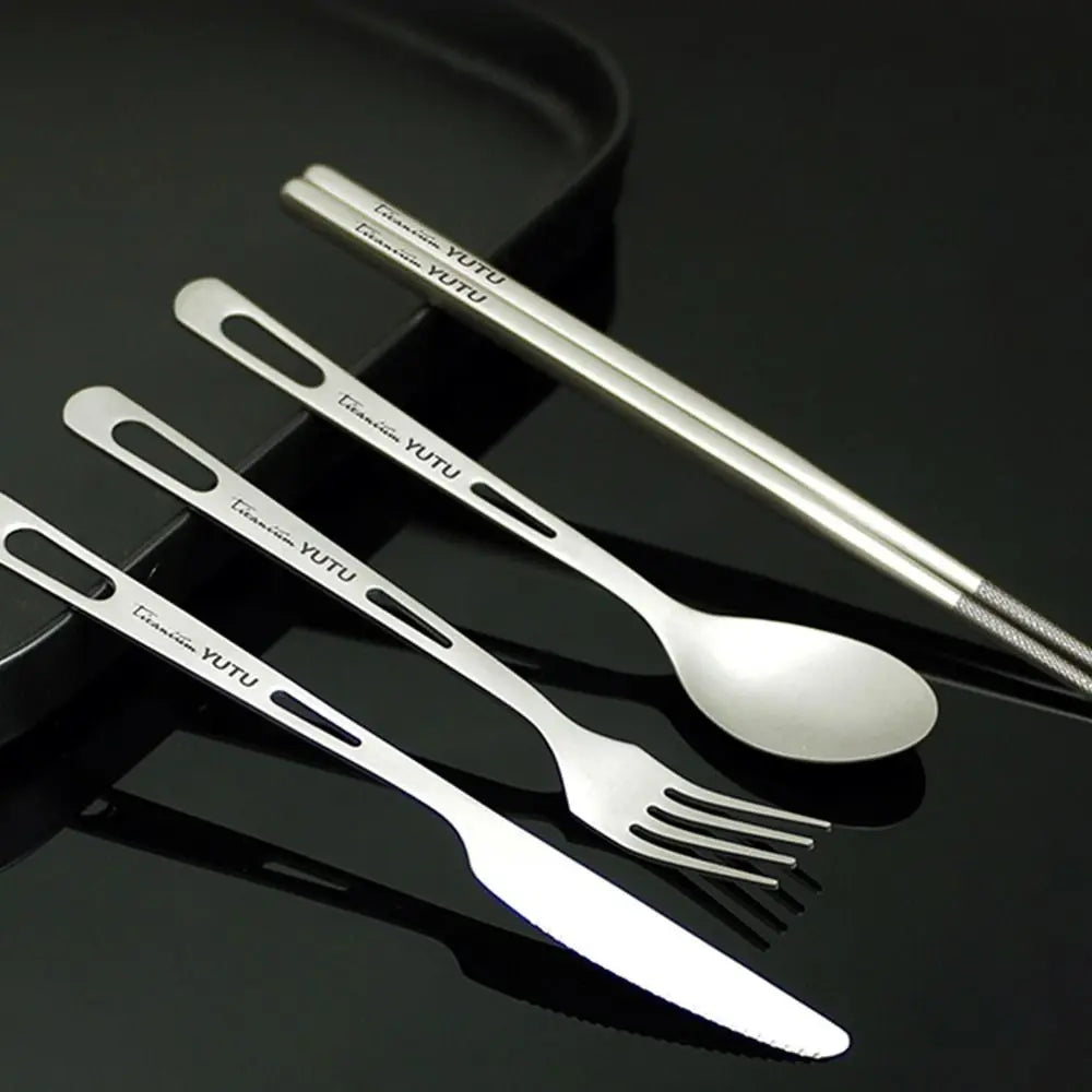 Portable Outdoor Dinnerware Sets Ultralight Travelling Knife Fork Spoon Chopstick Titanium Tableware Flatware Set Camping