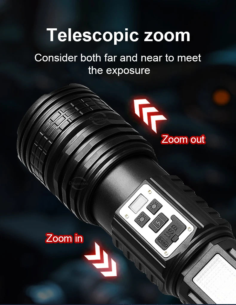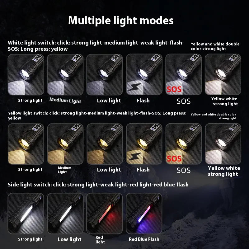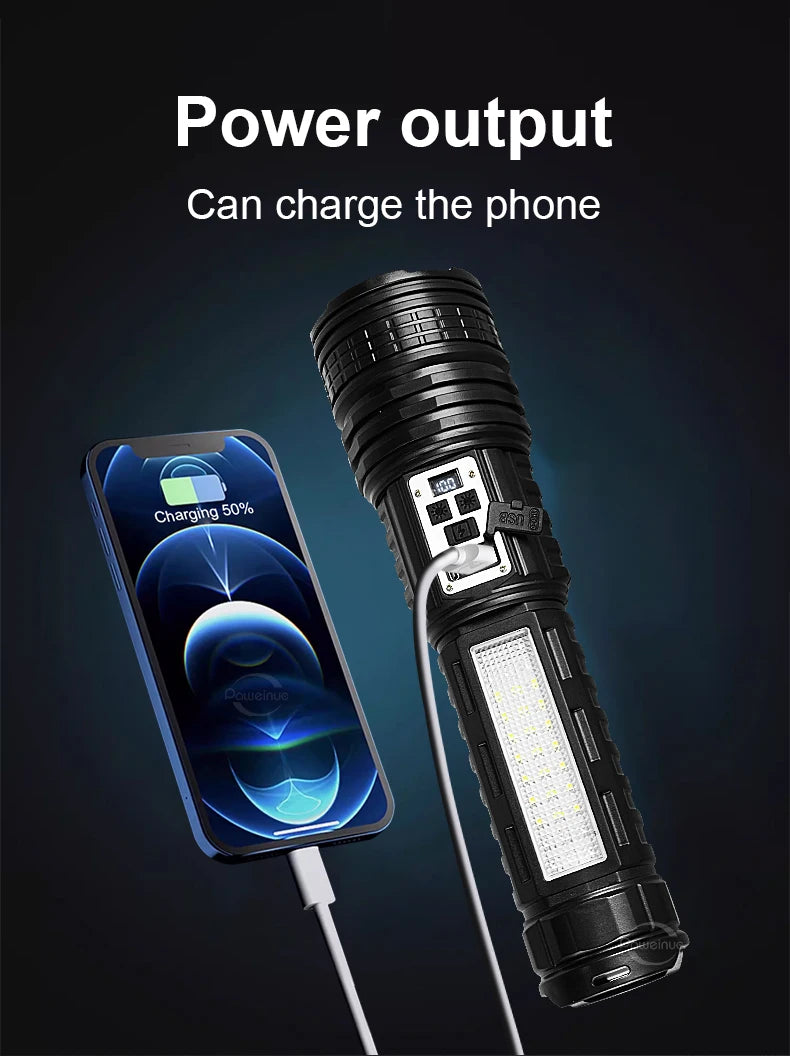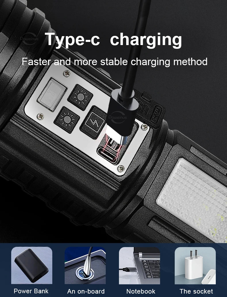 Powerful Flashlight With 7 Lamp Beads Super Tactical Light With COB Side Light Camping Lantern USB Rechargeable Outdoor Torch