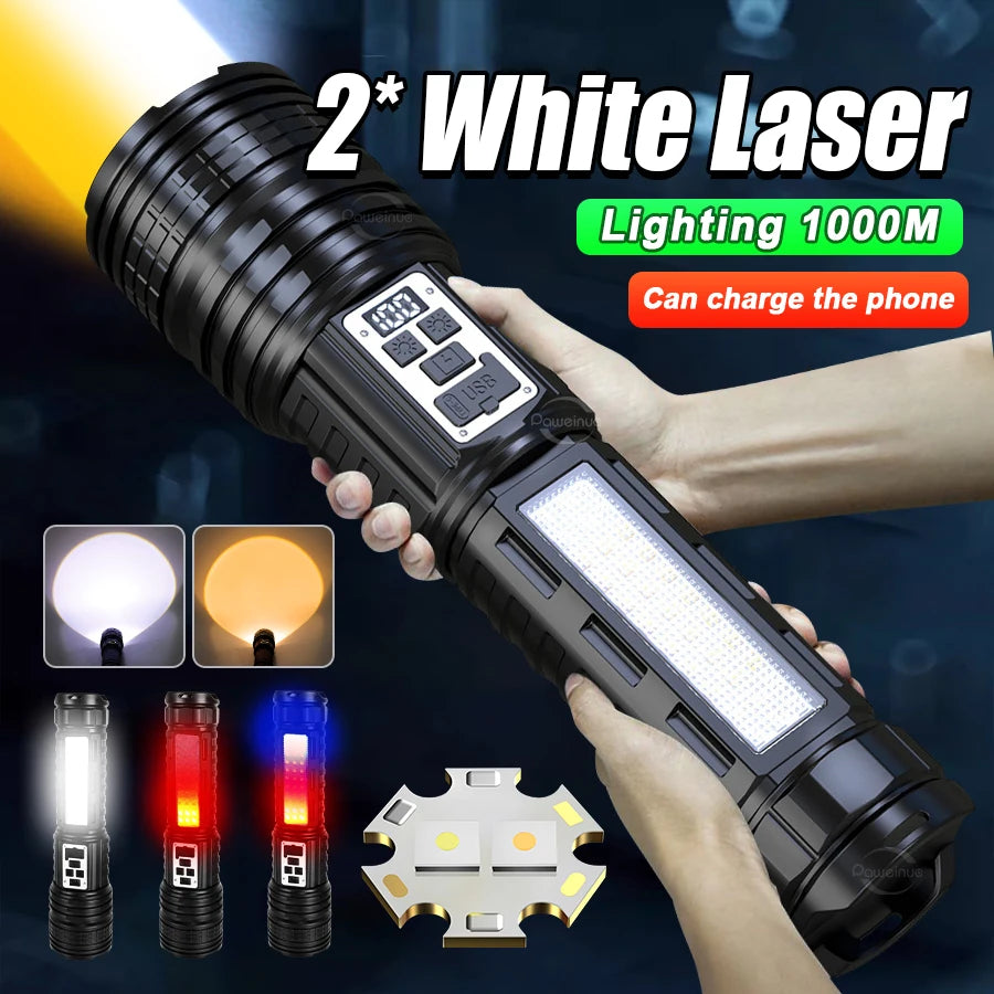 6000mAh High Power Led Flashlight With COB Rechargeable Ultra Powerful Flashlights Waterproof Torch Camping Lamp Outdoor Fishing