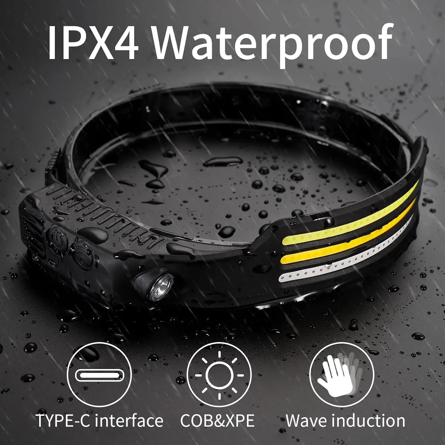 Induction Headlamp COB+LED Headlamp Built in Battery USB Rechargeable Outdoor Waterproof Camping Fishing Work Lantern