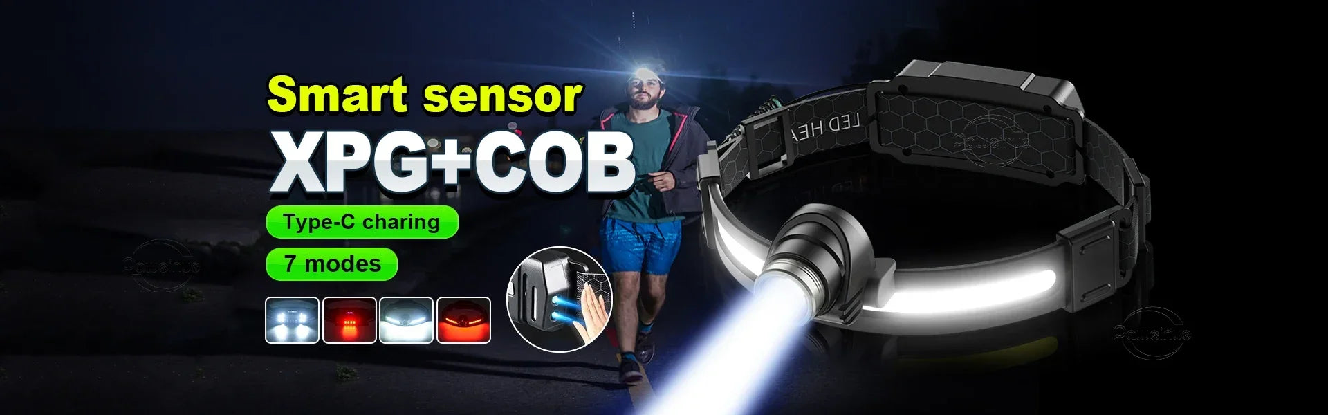 Powerful LED Headlamp 7 Modes XPE+COB Sensor Head Torch