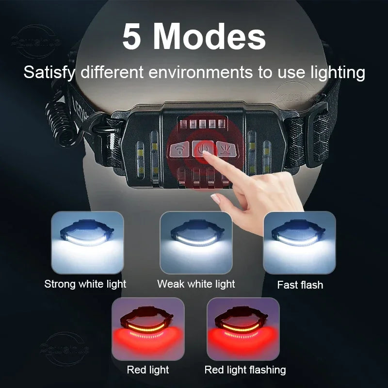 Induction Headlamp COB+LED Headlamp Built in Battery USB Rechargeable Outdoor Waterproof Camping Fishing Work Lantern