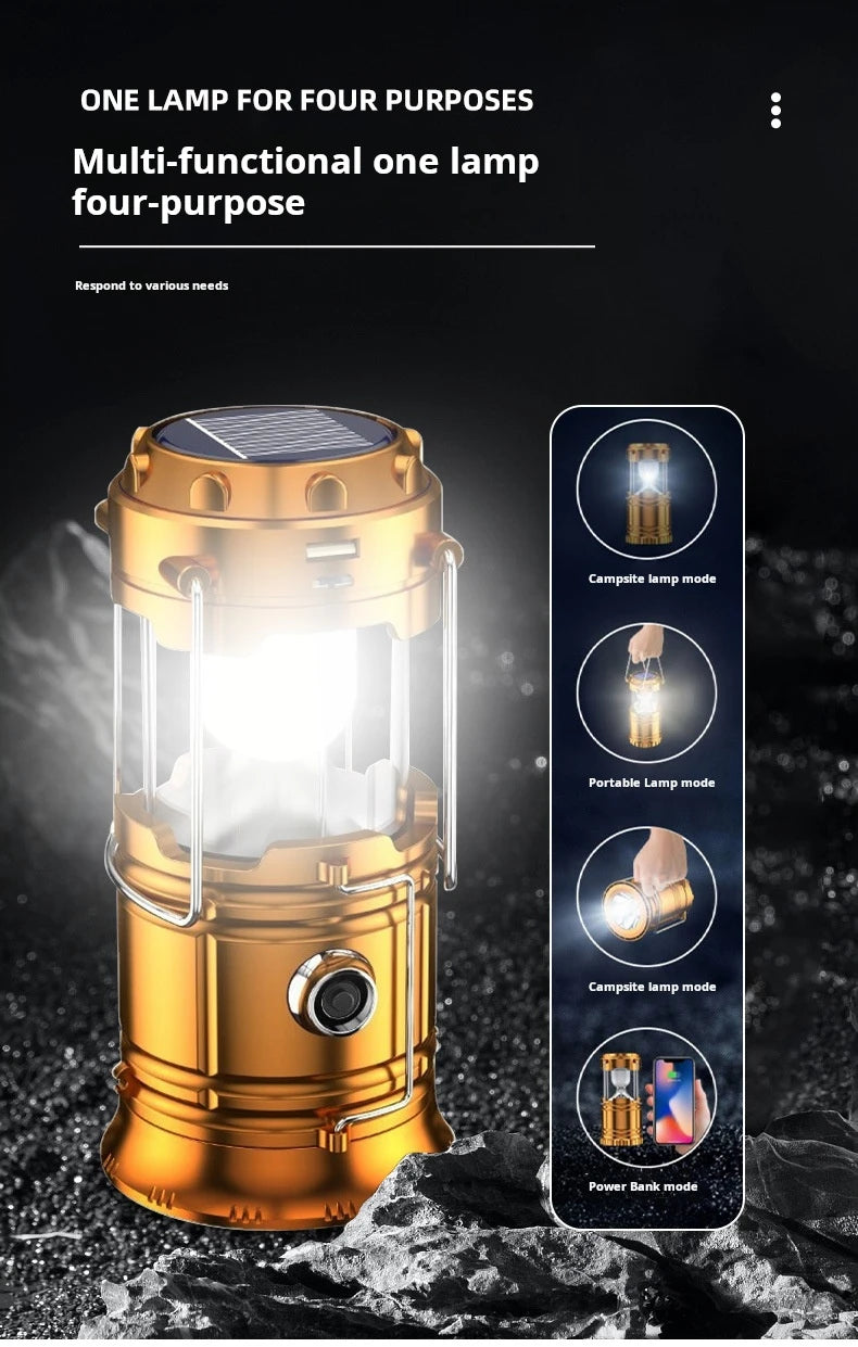 Solar Camping Light Portable Rechargeable Foldable Outdoor Searchlight Multifunctional Camping Lighting