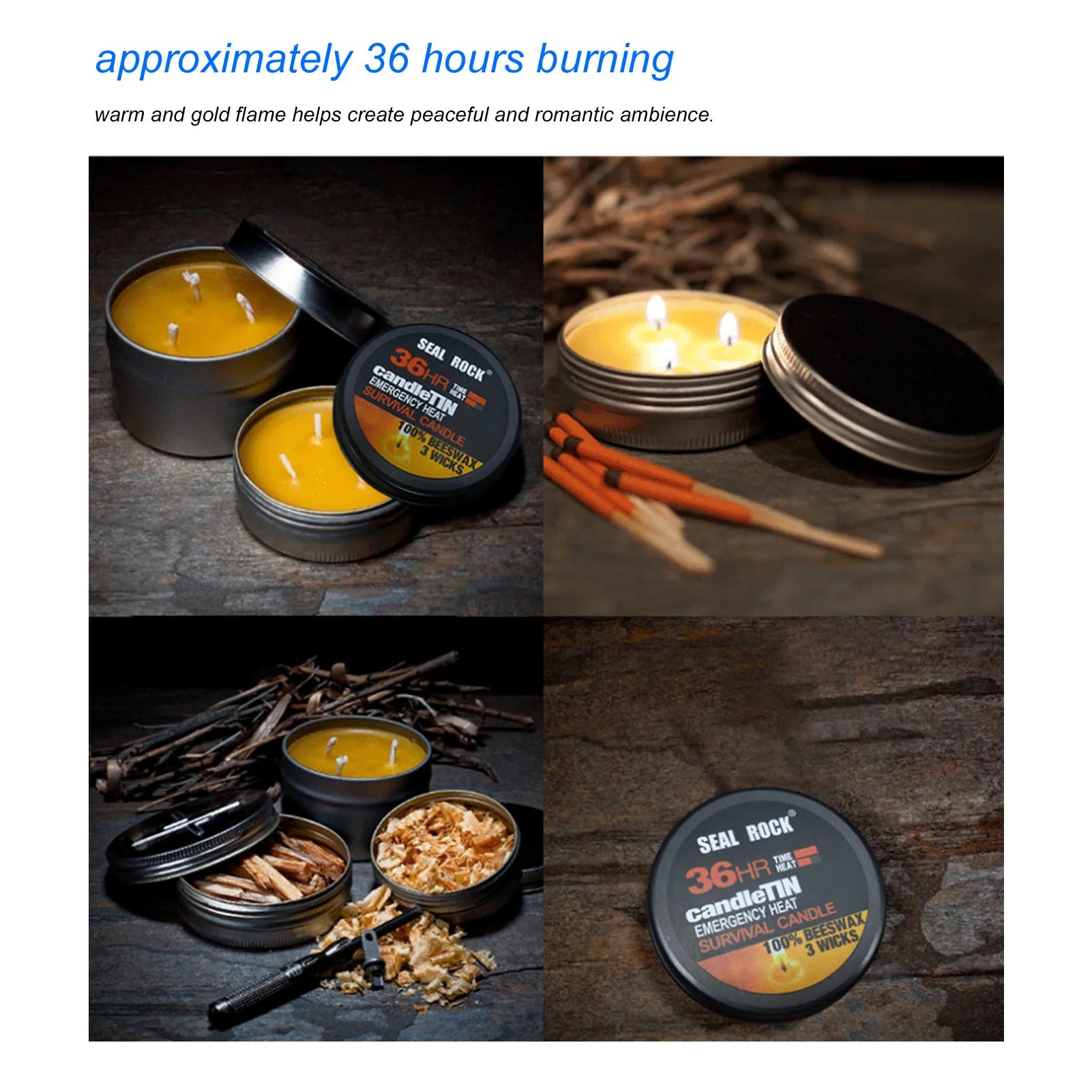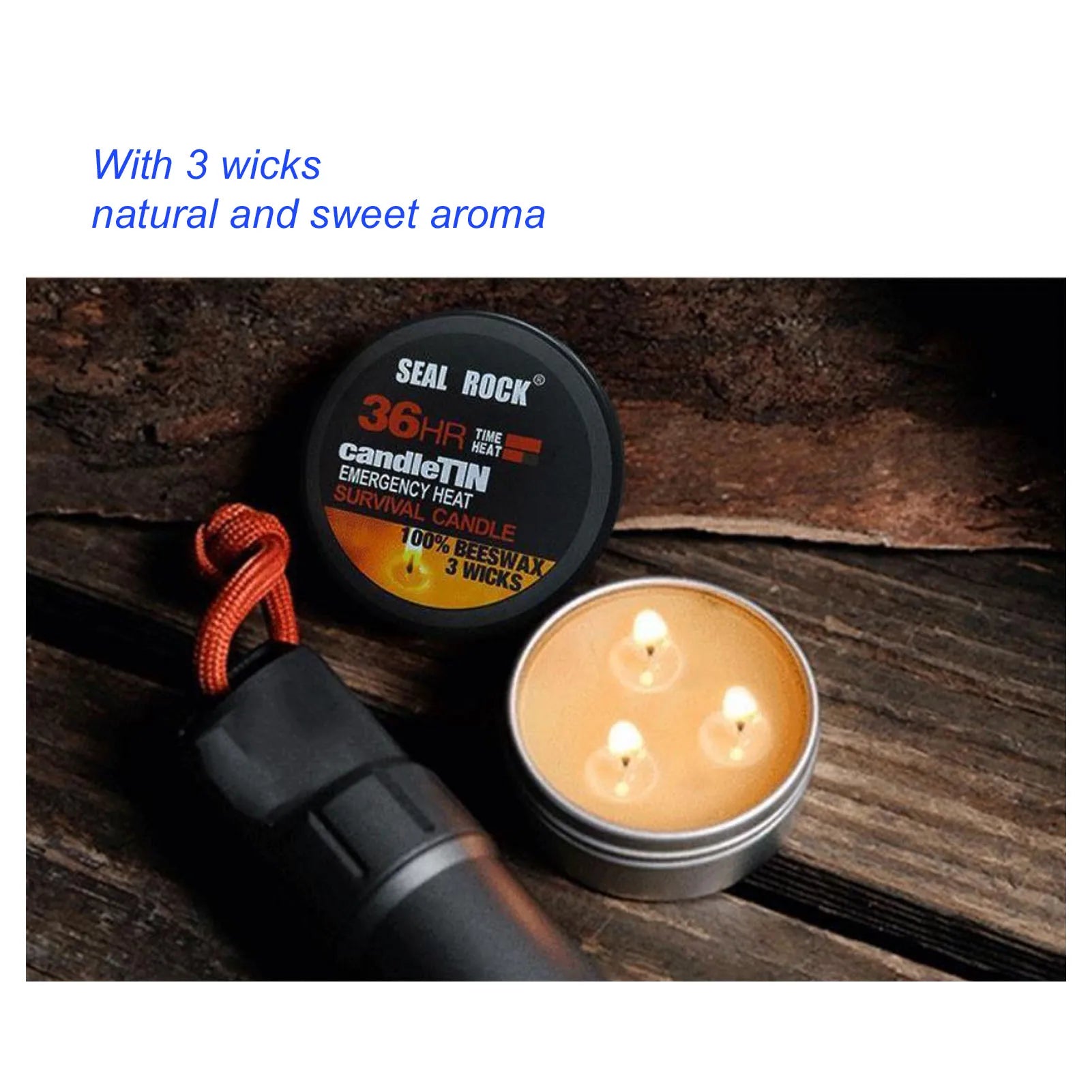 Survival Candle 3 Wicks Small Portable 36 Hours Burning Natural Aroma Long Lasting Candles Romantic Ambience for Camping
