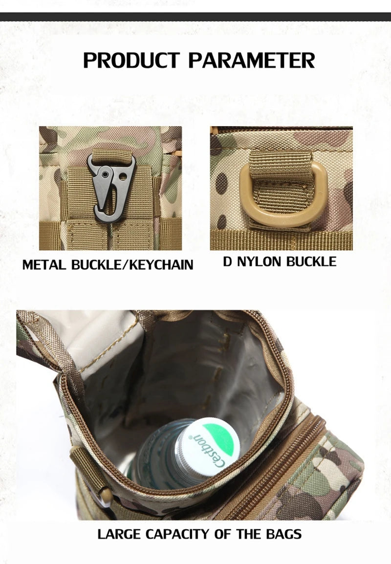 Tactical Molle Zipper Camo Water Bottle Pouches Small Mess Pouch Nylon Waterproof Waist Bag Outdoor Travel Sports Bottle Pouch