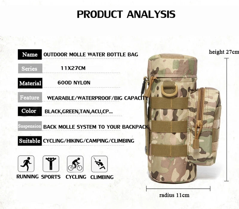 GearHold™ Tactical MOLLE Bottle Pouch – Waterproof Camo Nylon Zipper Bag for Outdoor Travel, Sports & Waist Carry