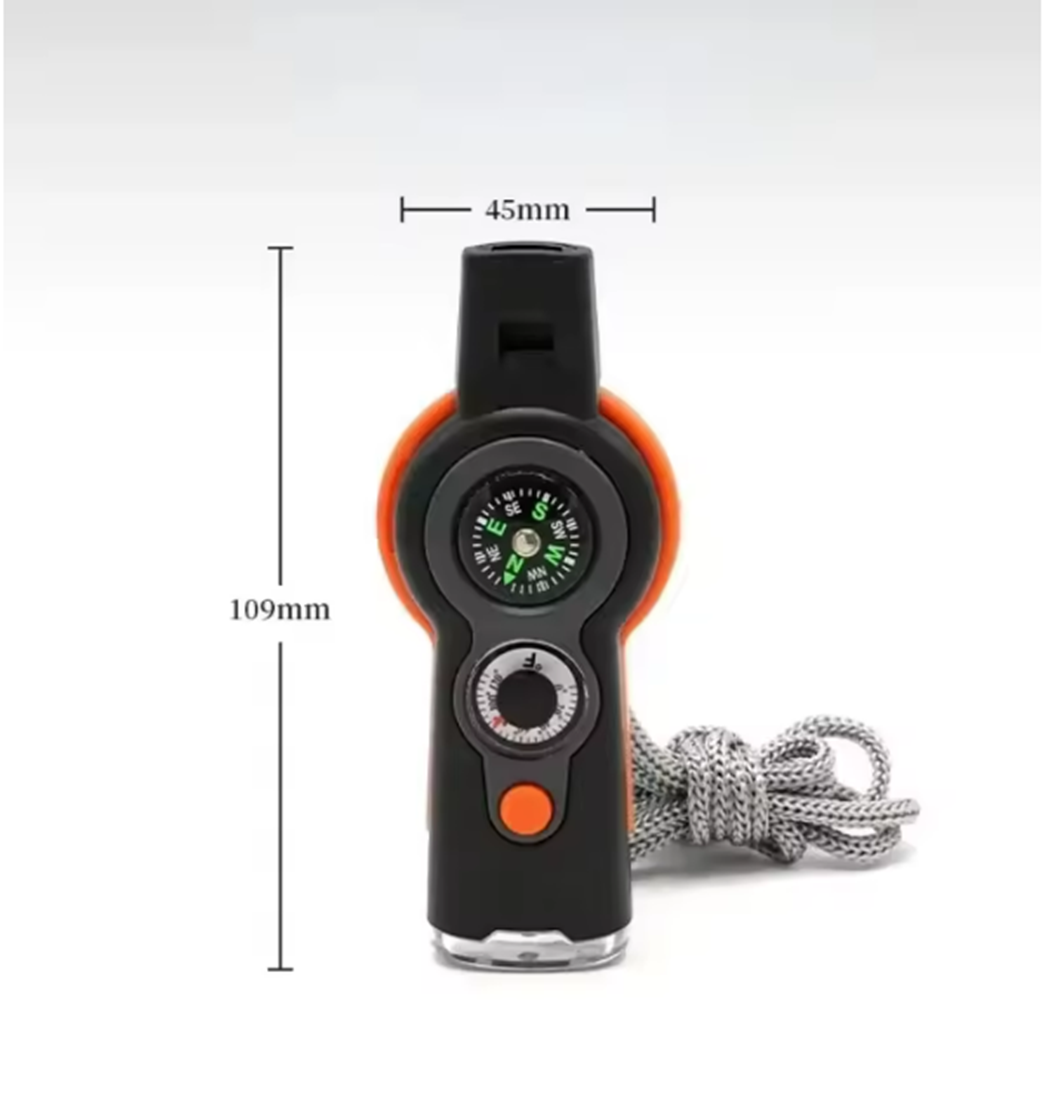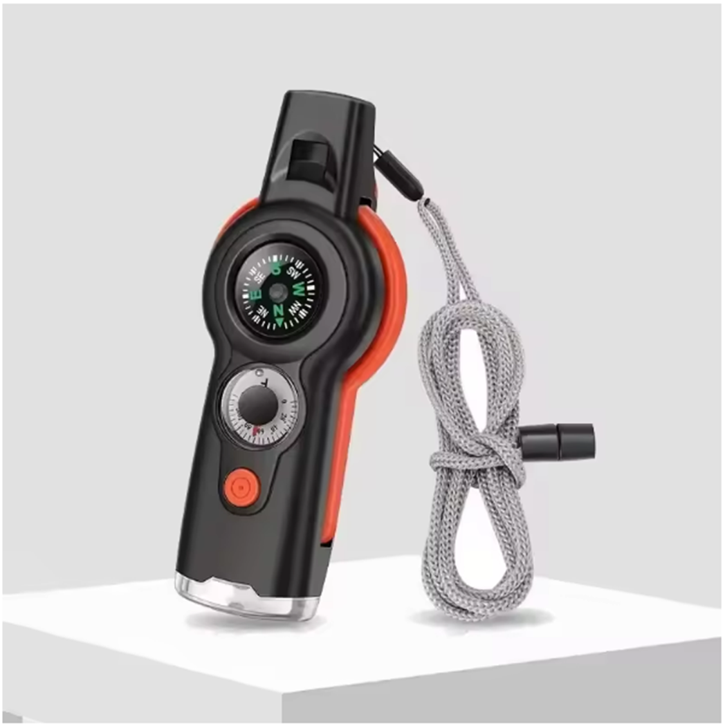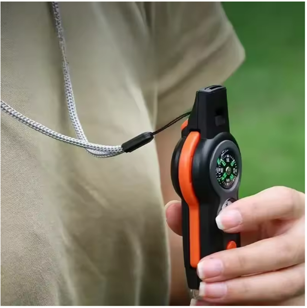 The Titan7™ Survival Whistle is a compact, multi-functional tool designed for survival, search & rescue, and outdoor navigation. Whether you’re signaling for help, checking your direction, or starting a fire — this tool gives you everything you need to stay prepared in one rugged, pocket-sized device.