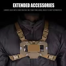 Easily integrates with tactical vests, plate carriers, chest rigs, and backpacks for chest-mounted use. -