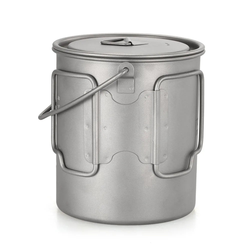TitanMug™ 750ML Ultralight Titanium Pot – Foldable Handle Camping Cup with Lid | Rugged & Portable Cookware for Outdoor Warriors
