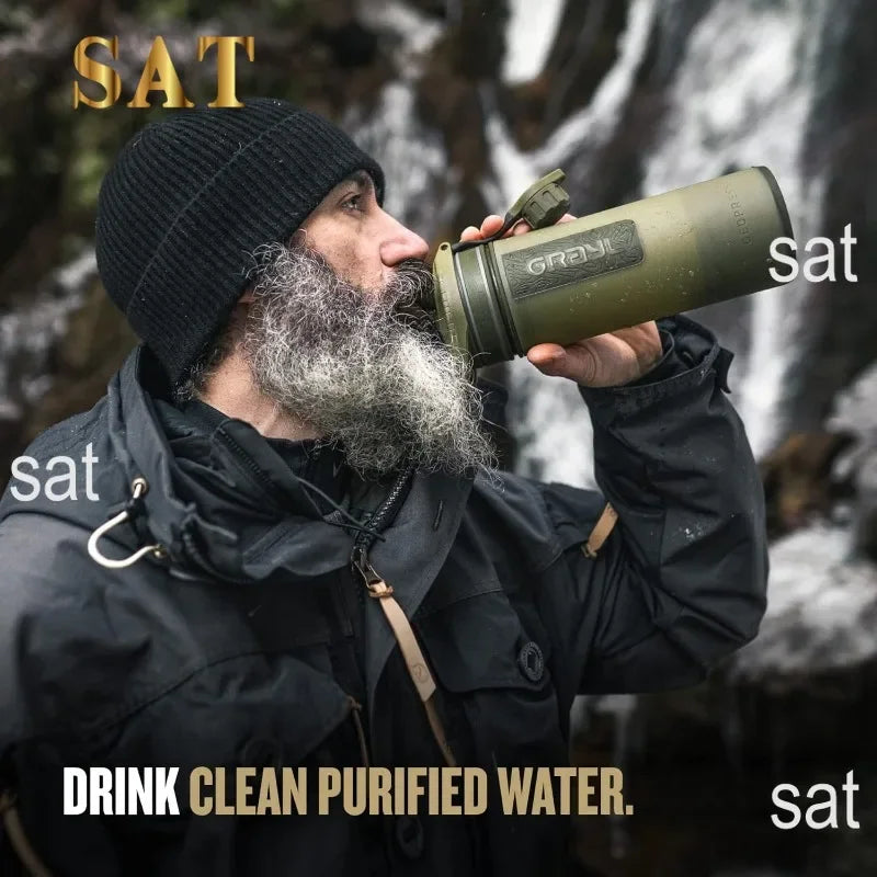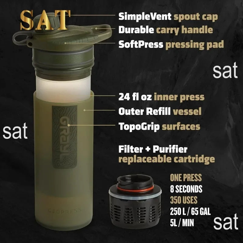 tt For GRAYL GeoPress 24 oz Water Purifier Bottle - Filter for Hiking, Camping, Survival, Travel (Olive Drab)