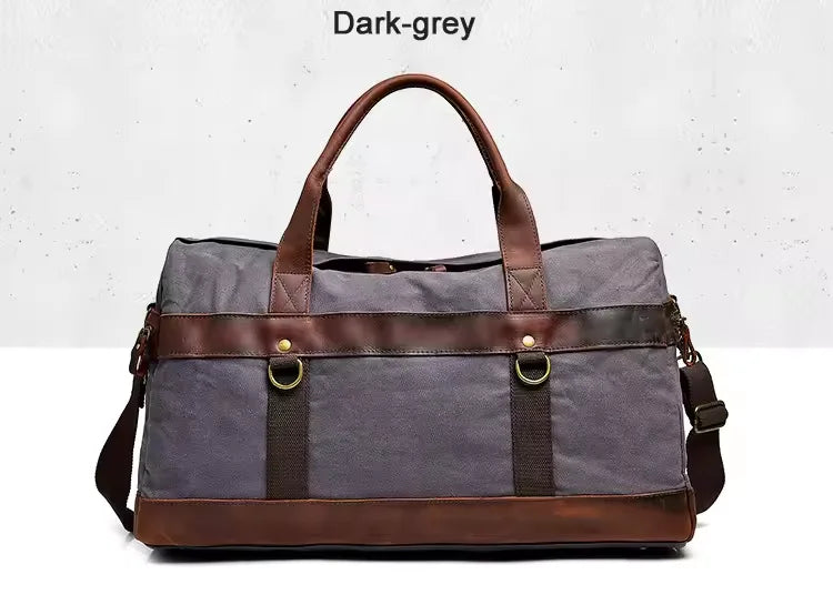 WaterProof Waxed Canvas Leather Men Travel Bag Hand Luggage Bag Carry On Large tote Vintage Men Duffle Weekend Bag big Overnight